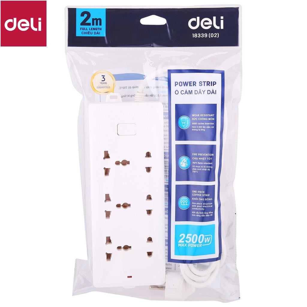 Thiết Bị Điện Gia Dụng > Mạch điện & Phụ tùng > Ổ cắm điện & Dây nối || Ổ cắm điện Deli - dây 2m/3m/5m - 1 chiếc - E18339-02/E18339-03/E18339-05 [Deli]Còn hàng