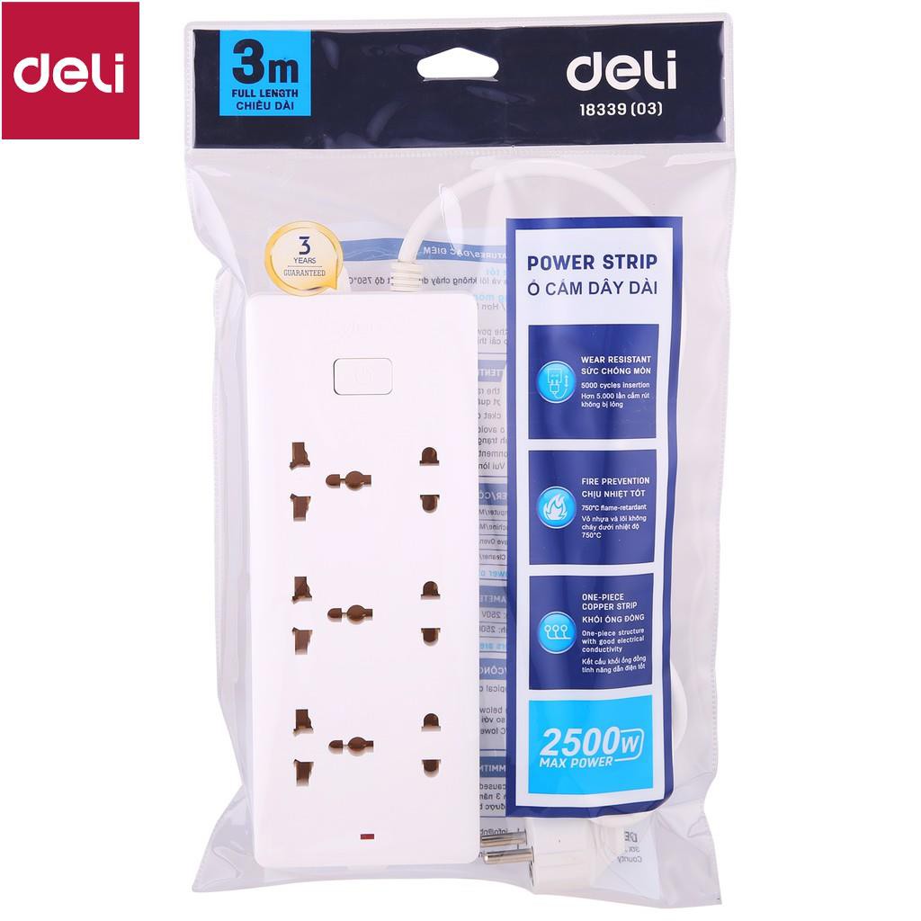 Ổ cắm điện Deli - dây 2m/3m/5m - 1 chiếc - E18339-02/E18339-03/E18339-05 [Deli]