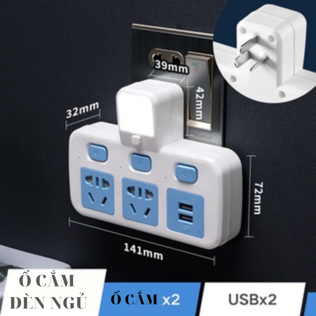 THÔNG TIN SẢN PHẨM Ổ cắm điện USB nhiều lỗ cắm đa năng thông minh tích hợp đèn ngủ , ổ cắm điện thông minh gọn nhẹ, chống giật- Với 2,4,6 ổ cắm 2-3 chân + 2 usb sạc tiện lợi