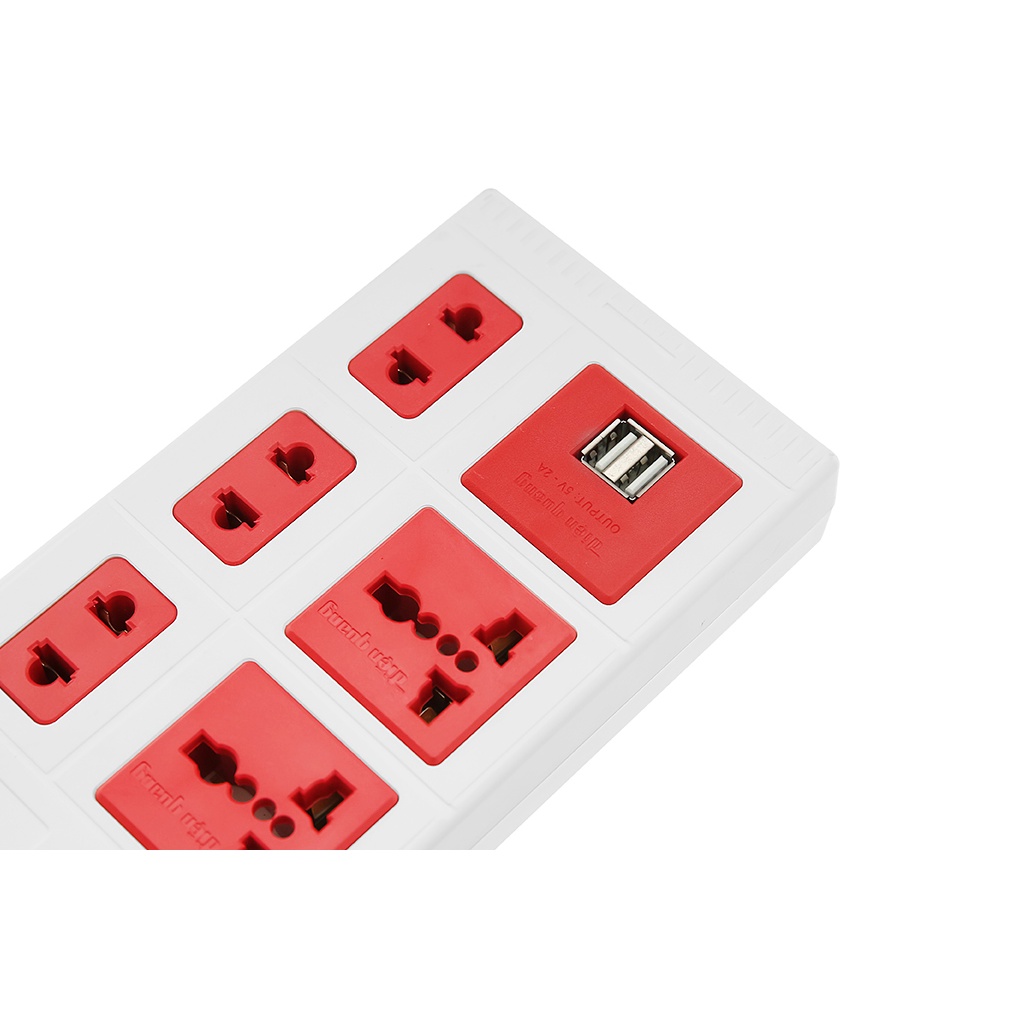 ● Ổ cắm điện màu trắng - đỏ thiết kế chắc chắn, nhỏ gọn, thẩm mĩ caoCó dây dài 5m cho phép người dùng sử dụng linh hoạt ở nhiều địa điểm khác nhau, dễ dàng mang đi làm, đi công tác,...