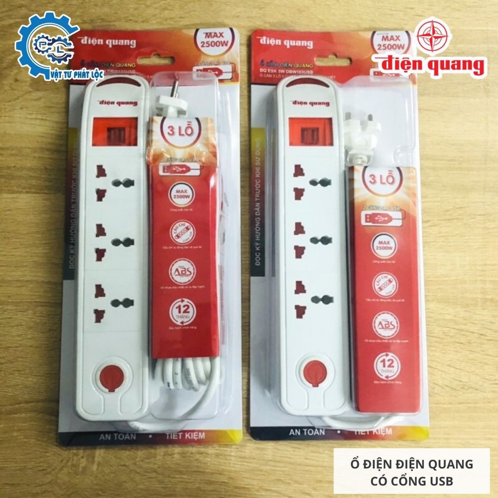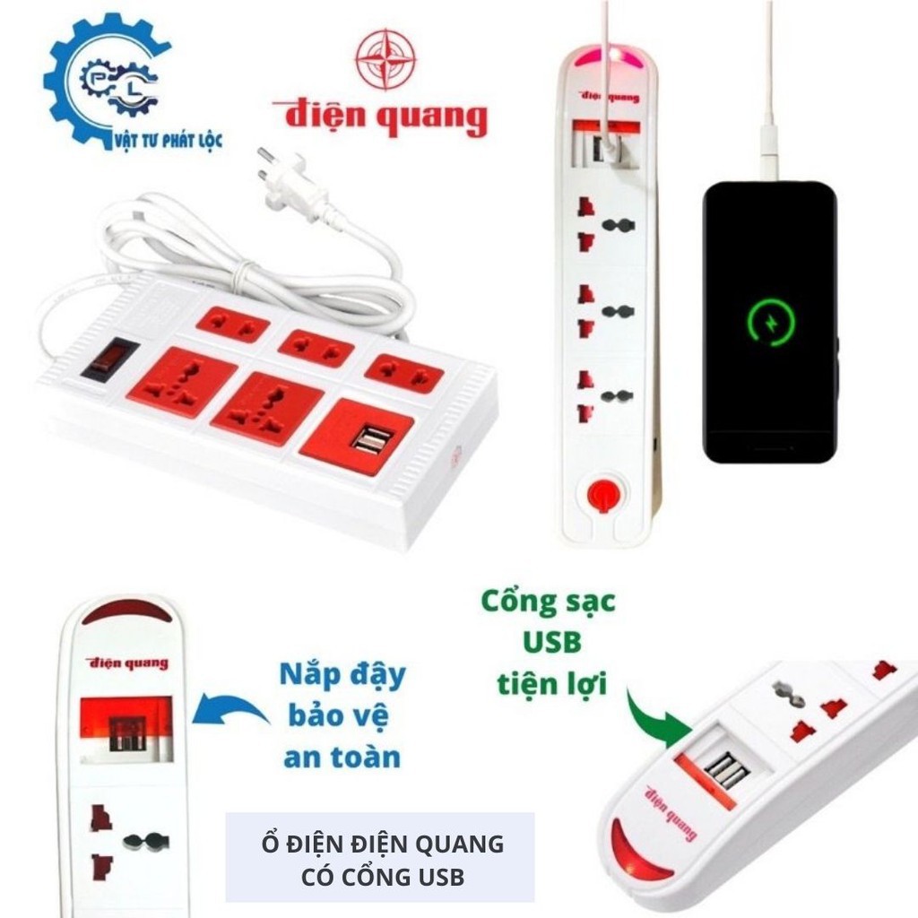 Giới thiệu Ổ cắm điện Điện Quang đa năng có lỗ USB 3 lỗ - 5 lỗ - Ổ điện dài 2m/5mnỗ