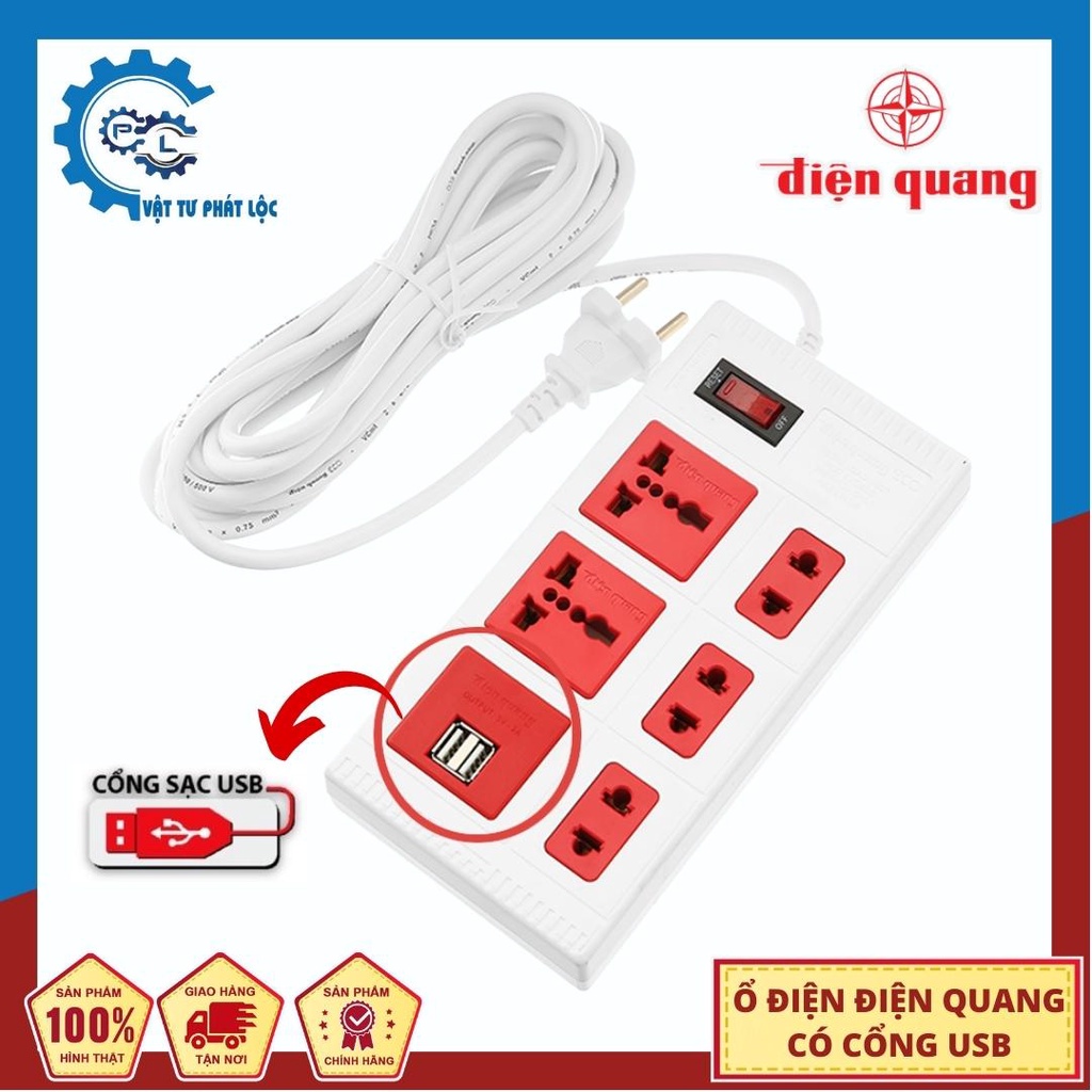 Ổ cắm điện Điện Quang đa năng có lỗ USB 3 lỗ - 5 lỗ - Ổ điện dài 2m/5mnỗ