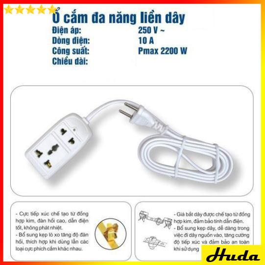 Ổ cắm điện du lịch đa năng 2 lỗ 3 mét 2200W 10A 250V VINAKIPCHI TIẾT SẢN PHẨM