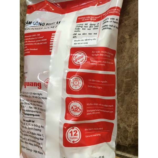 *** ĐẶC BIỆT: ổ cắm còn được thiết kế Rơ Le Tự ngắt khi quá tải. Khi sử dụng các thiết bị công suất lớn, nếu ổ cắm bị quá tải trong thời gian ngắn, thì rất dễ xảy ra tình trạng cháy nổ ổ cắm và thiết bị điện. Chính vì vậy, Ổ cắm công suất lớn Điện Quang đã thiết kế thêm Rơ Le tự ngắt , đảm bảo an toàn cho người sử dụng.