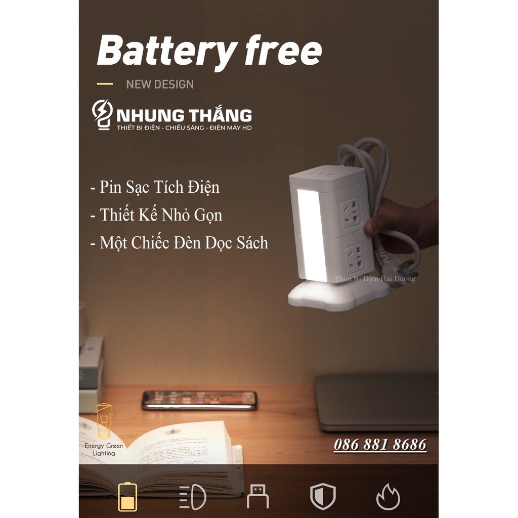 Ổ Cắm Điện Đứng JZB-A2,3,4 - Tích Hợp Đèn Chiếu Sáng - 3 Mức Sáng - Pin Sạc Tích Điện - Tặng Kèm Phích Cắm Chuyển Đổi
