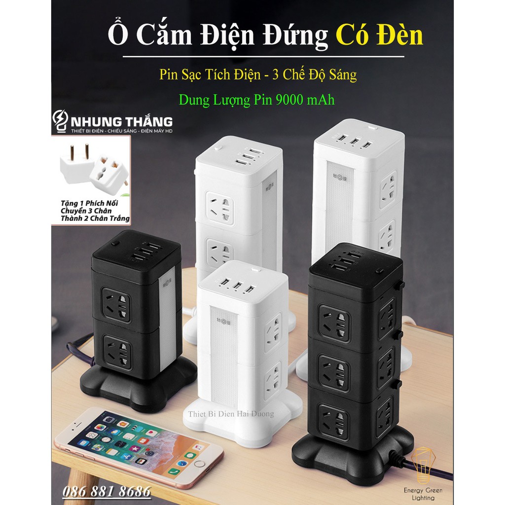 Thiết Bị Điện Gia Dụng > Mạch điện & Phụ tùng > Ổ cắm điện & Dây nối || Ổ Cắm Điện Đứng JZB-A2,3,4 - Tích Hợp Đèn Chiếu Sáng - 3 Mức Sáng - Pin Sạc Tích Điện - Tặng Kèm Phích Cắm Chuyển ĐổiCòn hàng