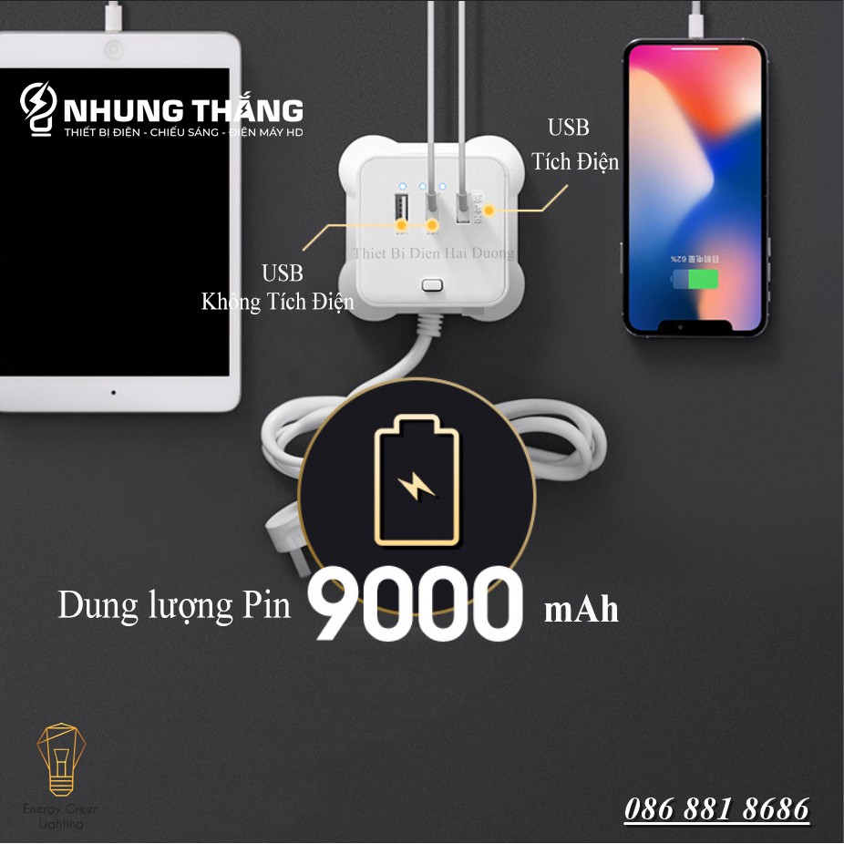 - Ổ cắm USB pin sạc tích điện như 1 chiếc sạc dự phòng lên đến 9000mAh