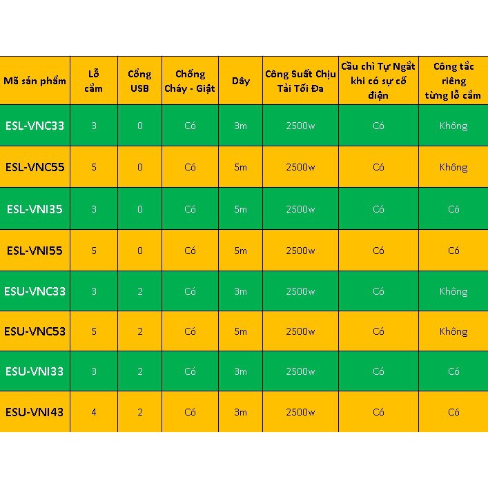 - Dòng ESU : Có 2 cổng sạc USB 2.1A