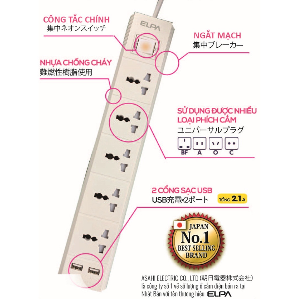 Thương hiệu: ELPA | Xem thêm các sản phẩm Ổ cắm điện của ELPAMô tả ngắn