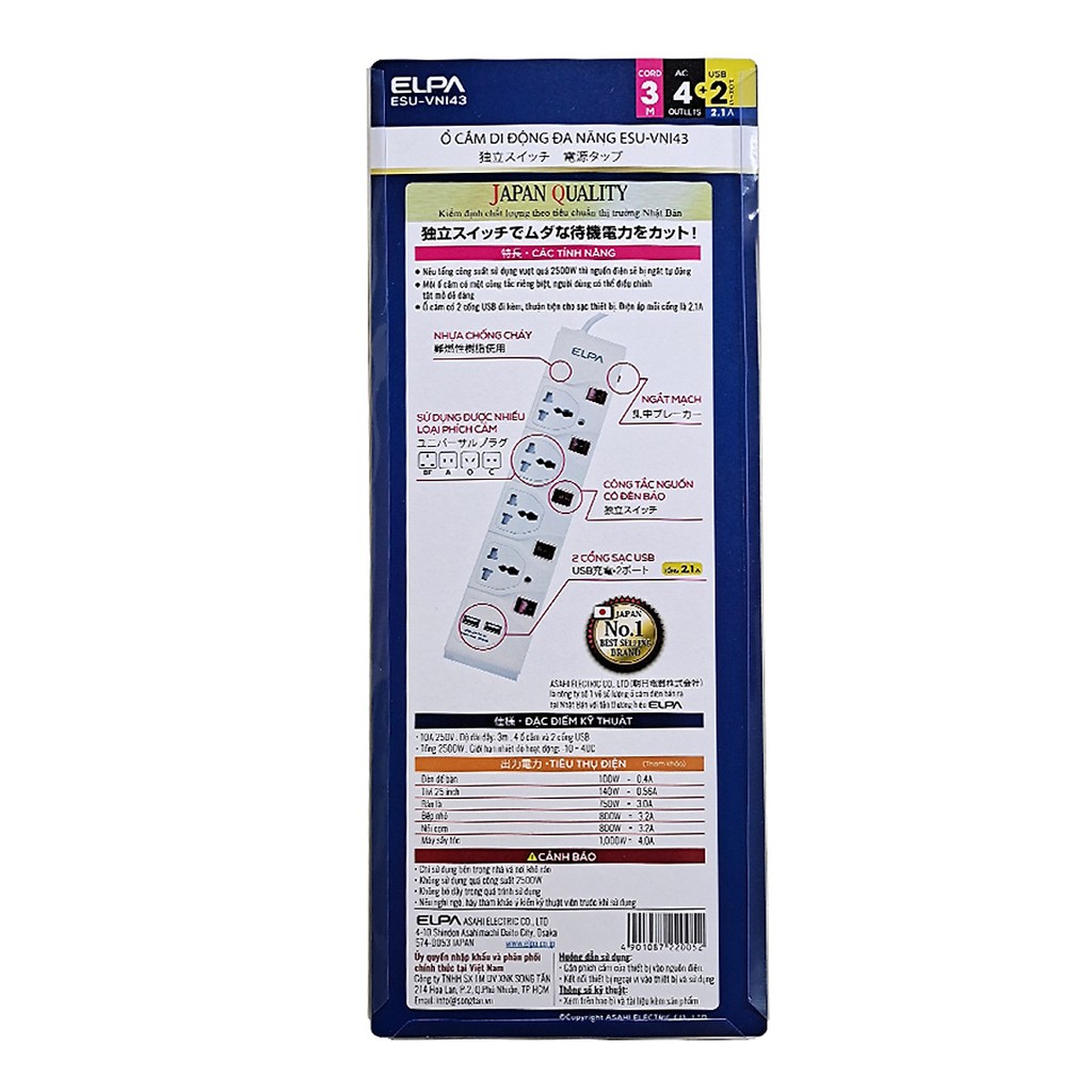 Thiết Bị Điện Gia Dụng > Mạch điện & Phụ tùng > Ổ cắm điện & Dây nối || Ổ cắm điện ELPA ESU-VNI43Còn hàng