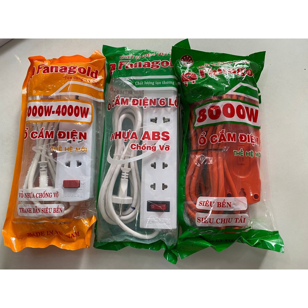 Thiết Bị Điện Gia Dụng > Mạch điện & Phụ tùng > Ổ cắm điện & Dây nối || Ổ cắm điện Fanagold đa năng siêu chịu tải 3000W-8000W, ổ điện 4 lỗ, 6 lỗ dây dài 3m-5m, nhựa ABS chống vỡ, chống cháyCòn hàng