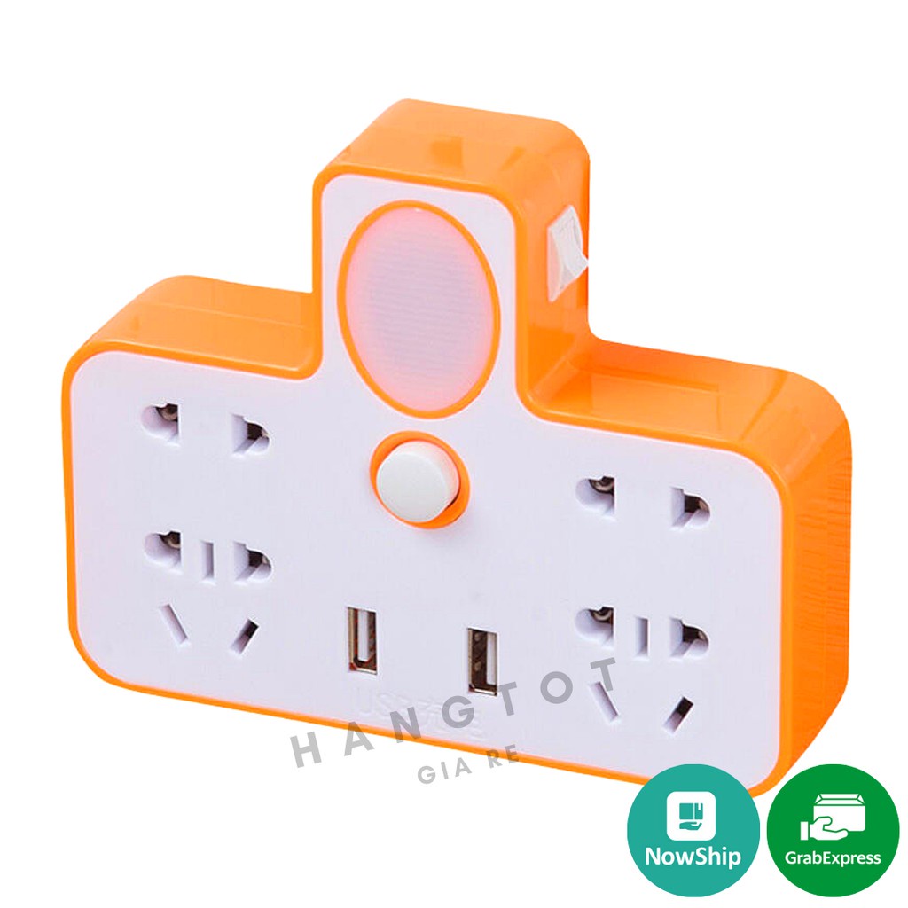 Ổ Cắm Điện Phát Sáng Hình Chữ T Nhỏ Gọn Đa Năng Có Đèn Ngủ Tiện Dụng Tích Hợp 2 Cổng Sạc USB (Giao Mẫu Ngẫu Nhiên)– Chất liệu nhựa ABS, đồng nguyên chất.