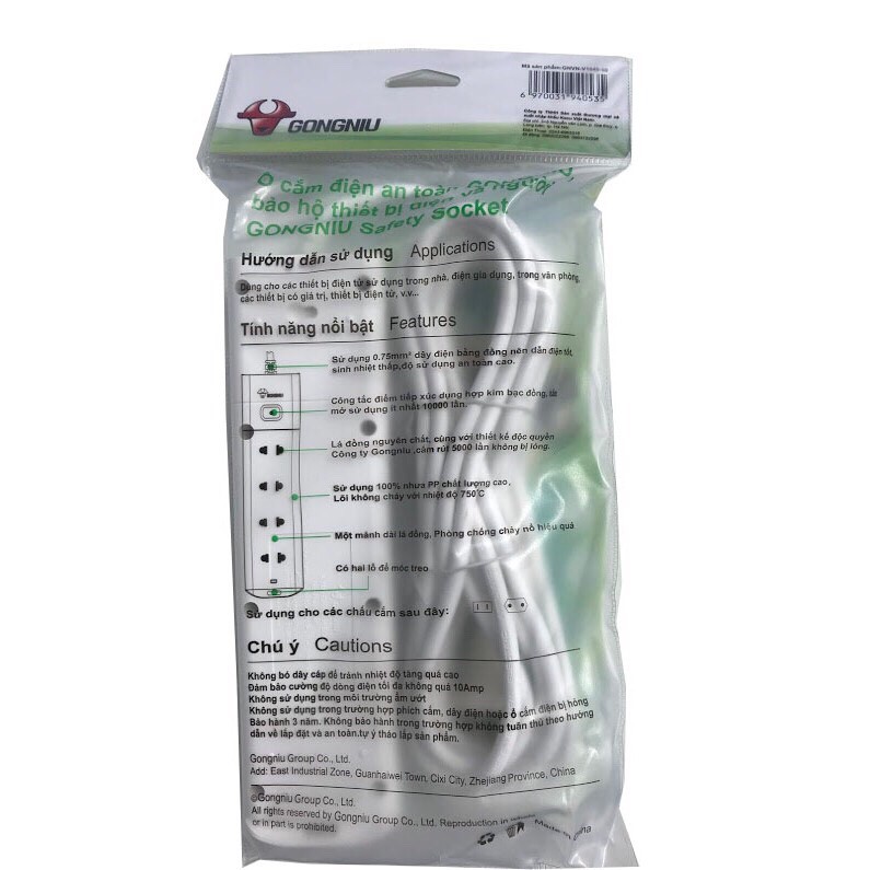 - Ổ cắm điện Gongniu là ổ cắm đa năng có thể cắm được cho phích cắm dẹp lẫn phích cắm tròn.