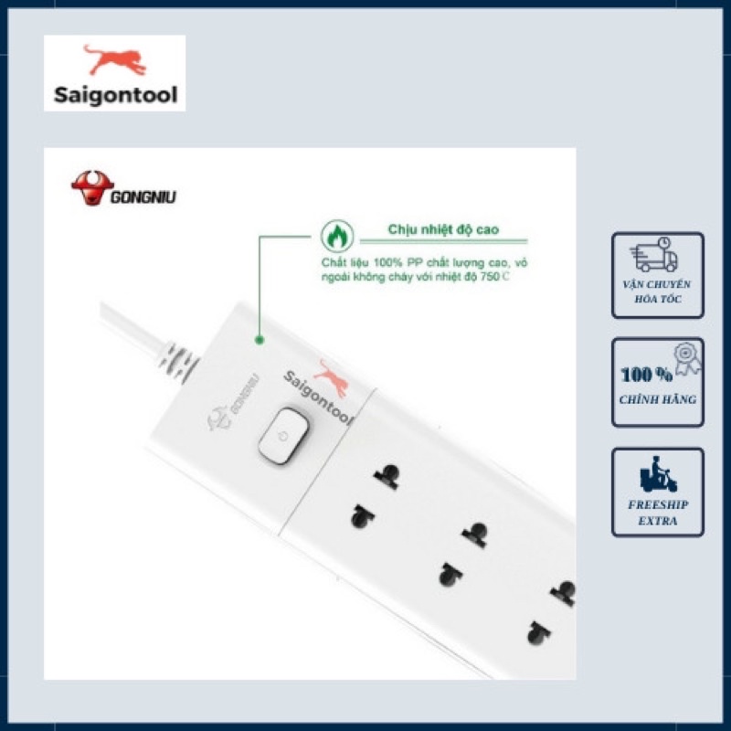 Thiết Bị Điện Gia Dụng > Mạch điện & Phụ tùng > Ổ cắm điện & Dây nối || Ổ Cắm Điện Gongniu 3 Ổ 1 Công Tắc 2500W/10A Dây dài 3/5M (V1030) - Chính HãngCòn hàng