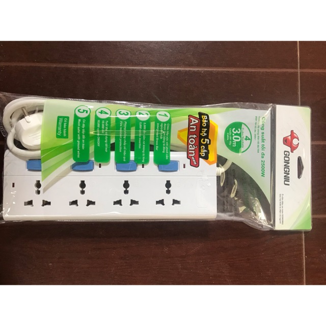Ổ CẮM ĐIỆN GONGNIU 4 lỗ đa năng; 4 công tắcCông suất tối đa: 2500w