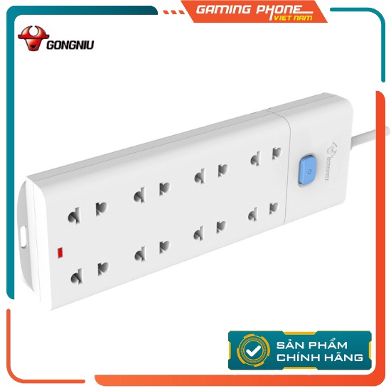 Ổ Cắm Điện Gongniu 8 Ổ 1 Công Tắc 2500W – Trắng – Chính Hãng – V1080Ổ cắm điện nối dài thế hệ mới - Hàng Gongniu phân phối chính hãng tại Vietnam.