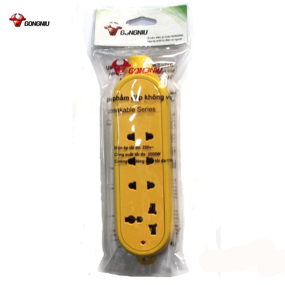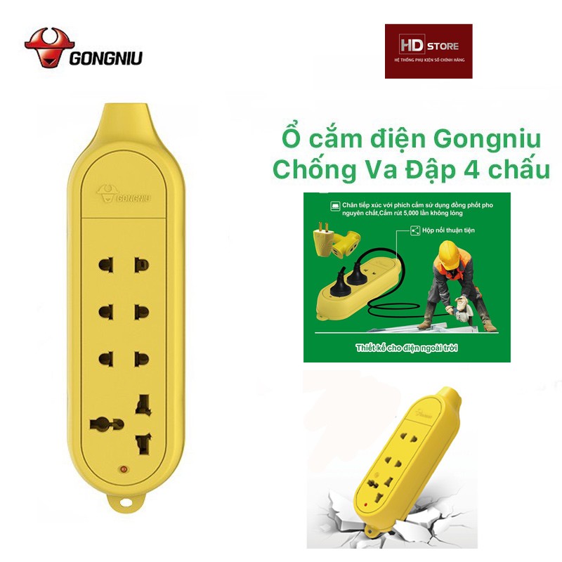 Thiết Bị Điện Gia Dụng > Mạch điện & Phụ tùng > Ổ cắm điện & Dây nối || Ổ Cắm Điện GongNiu Đa Năng Chống Va Đập 4 Ổ 2500W/10A dùng xây dựng công trường thi công chịu lực caoCòn hàng