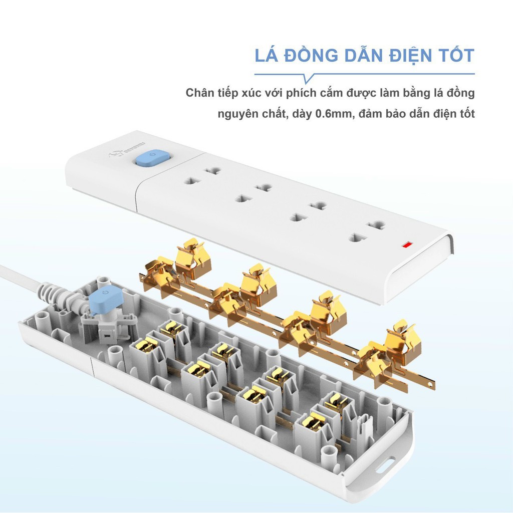 Giới thiệu Ổ cắm điện đa năng GongNiu Bull 8 ổ 1 công tắc Công suất 2500W 10A Dây nối dài 3 Mét nhiều ổ