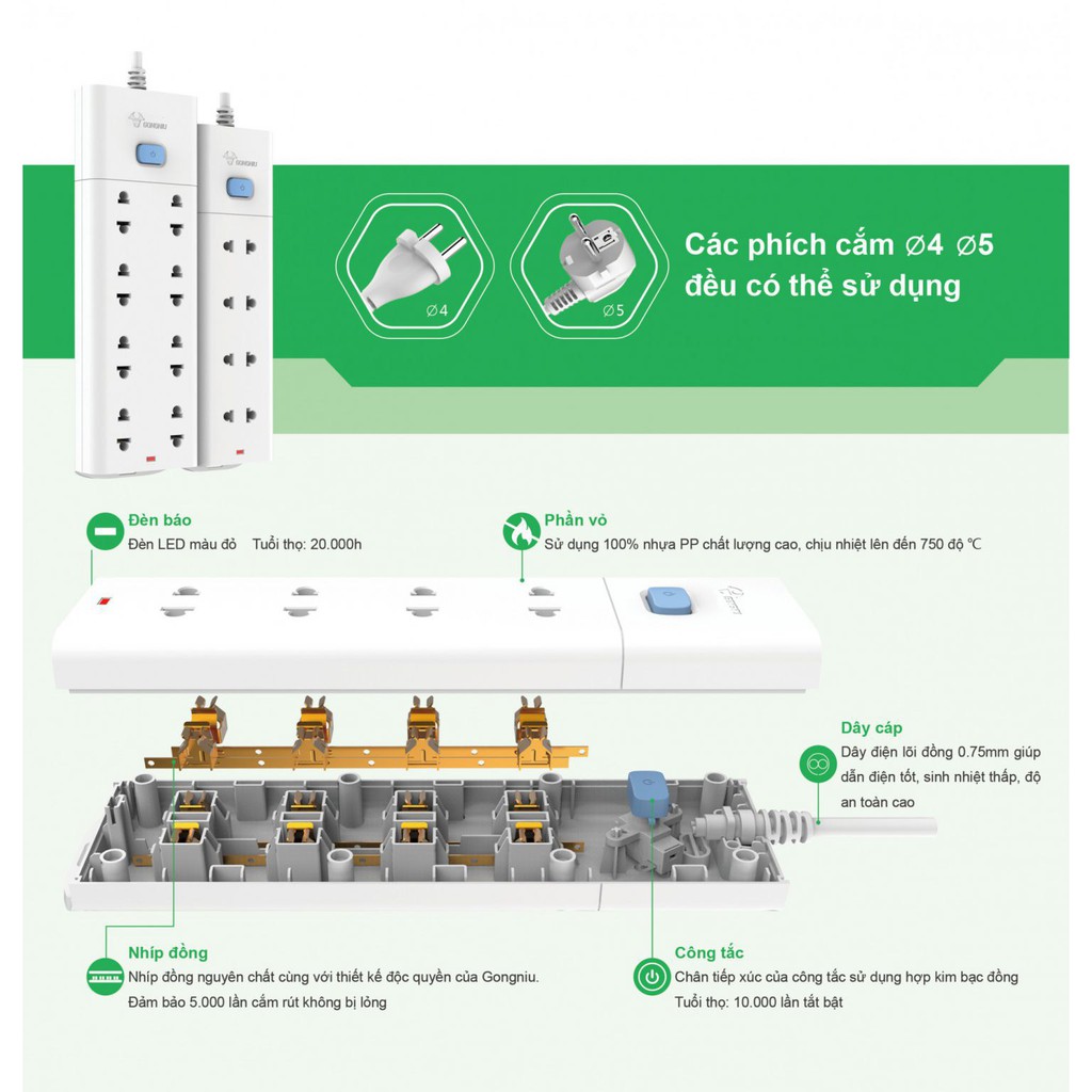 Thương hiệu: GONGNIU | Xem thêm các sản phẩm Ổ cắm điện của GONGNIUMô tả ngắn