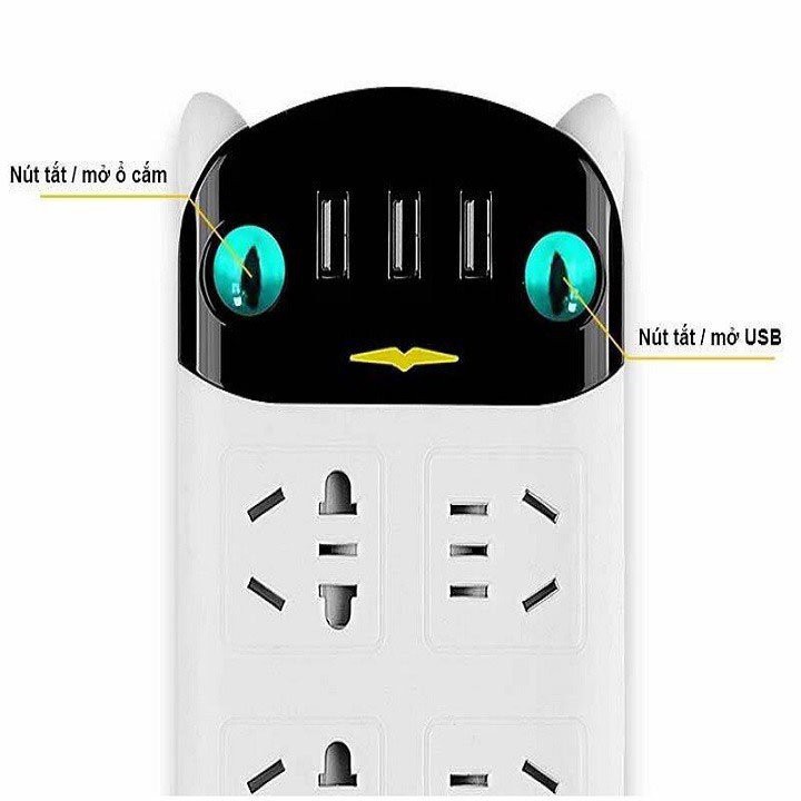 Thiết Bị Điện Gia Dụng > Mạch điện & Phụ tùng > Ổ cắm điện & Dây nối || Ổ cắm điện hình gấu mèo 3 cổng sạc usb và 4 lỗ cắm điện dây dài 1m8Còn hàng