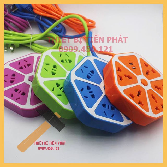 Thiết Bị Điện Gia Dụng > Mạch điện & Phụ tùng > Ổ cắm điện & Dây nối || Ổ cắm điện hình trái cam 5 lỗ cắm, 3 chấu, 2 cổng usb Màu Ngẫu Nhiên Dây Dài 1,5m.Còn hàng