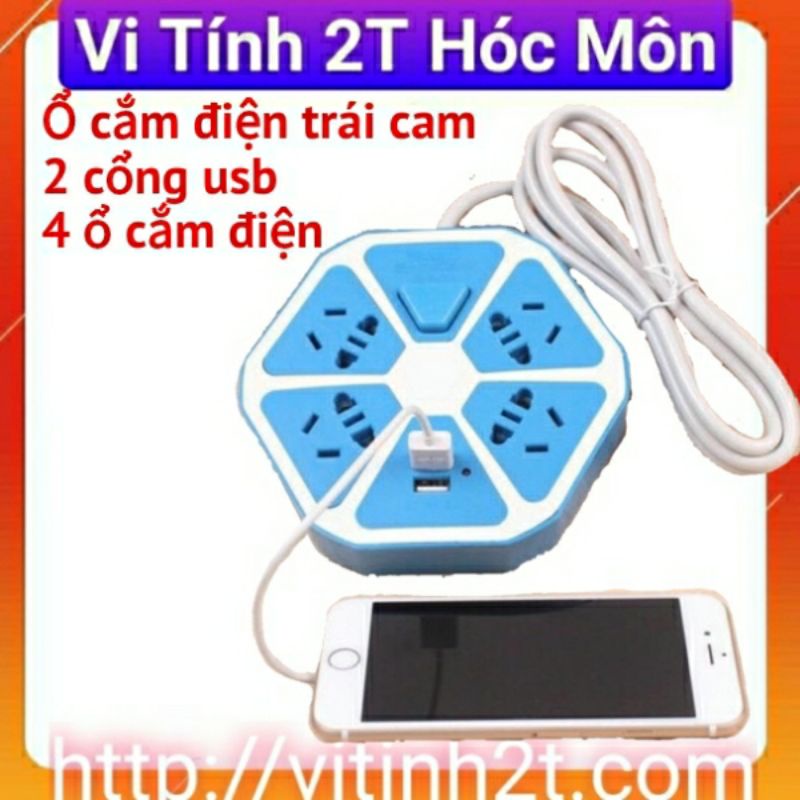 Thiết Bị Điện Gia Dụng > Mạch điện & Phụ tùng > Ổ cắm điện & Dây nối || Ổ cắm điện hình trái cam với 2 cổng USB 4 ổ cắm điệnCòn hàng