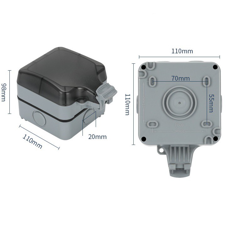 Ổ cắm điện dùng ngoài trời chống thấm nướcTrên ổ cắm có 2 chấu cắm : 1 chấu đa năng 3 lỗ và 1 chấu 2 lỗ tròn phù hợp cho tất cả thiết bị điện tại Việt Nam . ( LƯU Ý : CÔNG TẮC ĐỂ BẬT/ TẮT Ổ CẮM