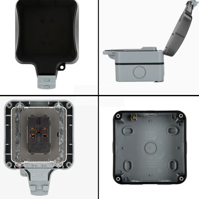 Giới thiệu Ổ Cắm Điện Kèm Công Tắc Đèn, Chống Nước Chuẩn IP66, Nguồn 16a, Nối Đất, Chịu Được Thời Tiết, Dùng Ngoài Trời