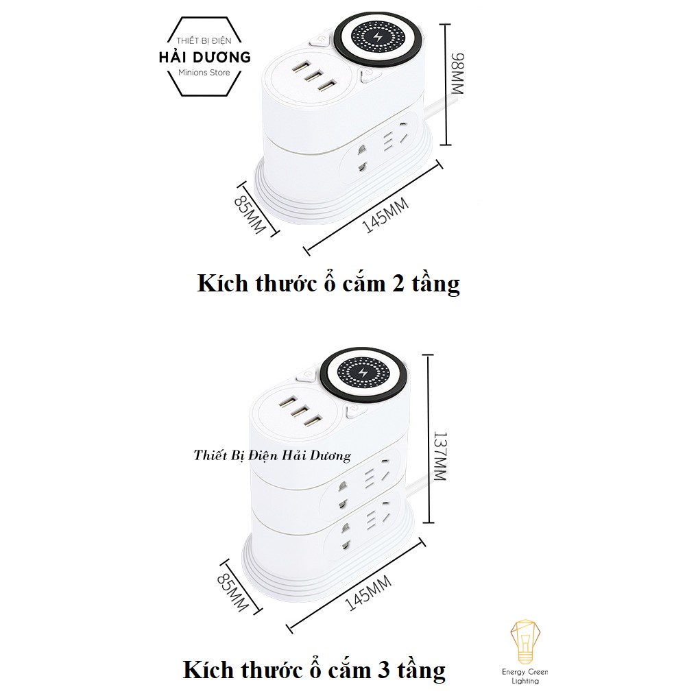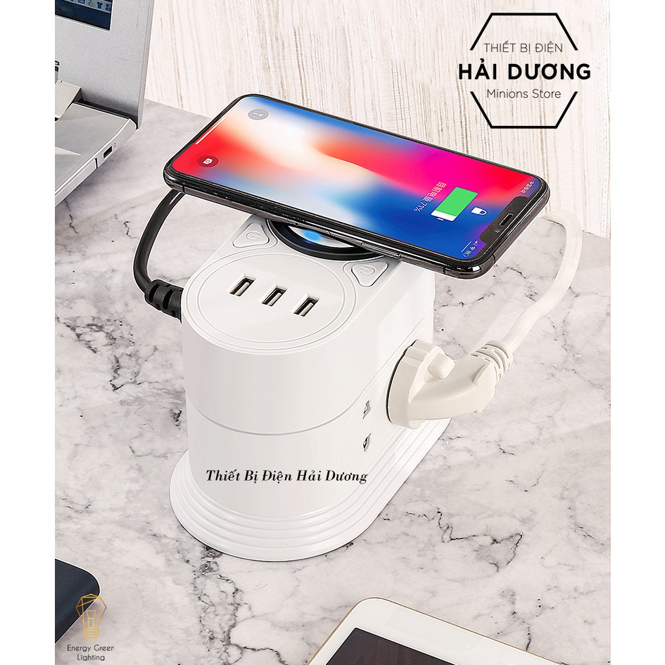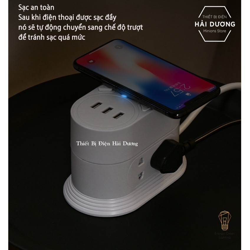 Giới thiệu Ổ Cắm Điện Kèm Sạc Không Dây Đa Năng 2 Tầng 3m , Ổ Cắm Điện Kèm Sạc Không Dây 3 Tầng 3m - Sạc Nhiều Điện Thoại Cùng Lúc