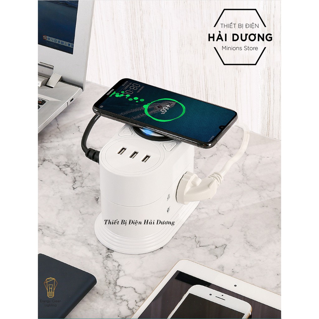 Ổ Cắm Điện Kèm Sạc Không Dây Đa Năng 2 Tầng 3m , Ổ Cắm Điện Kèm Sạc Không Dây 3 Tầng 3m - Sạc Nhiều Điện Thoại Cùng Lúc