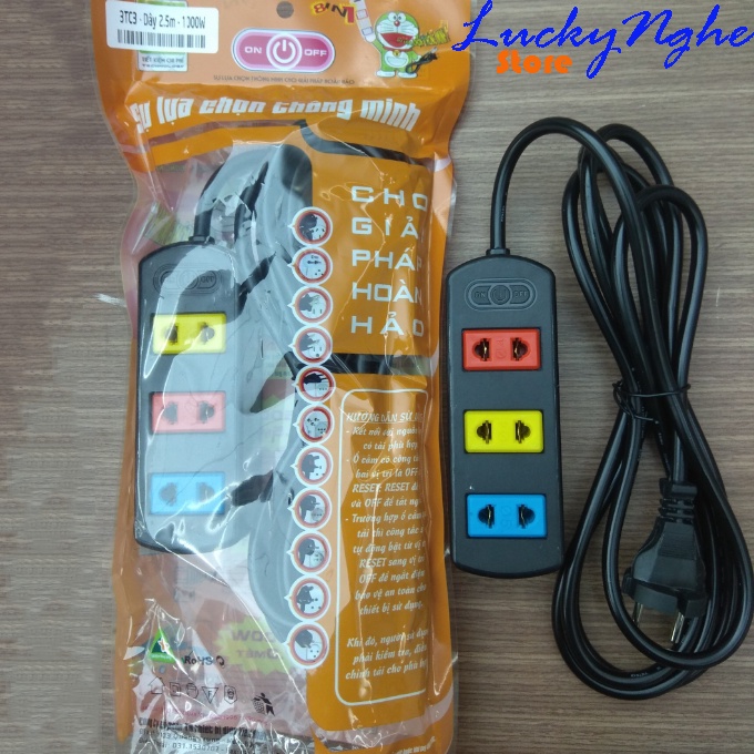 Thiết Bị Điện Gia Dụng > Mạch điện & Phụ tùng > Ổ cắm điện & Dây nối || Ổ cắm điện KENNO 3 lỗ màu - chiều dài dây 2.5/4.5m an toàn chống quá tảiCòn hàng