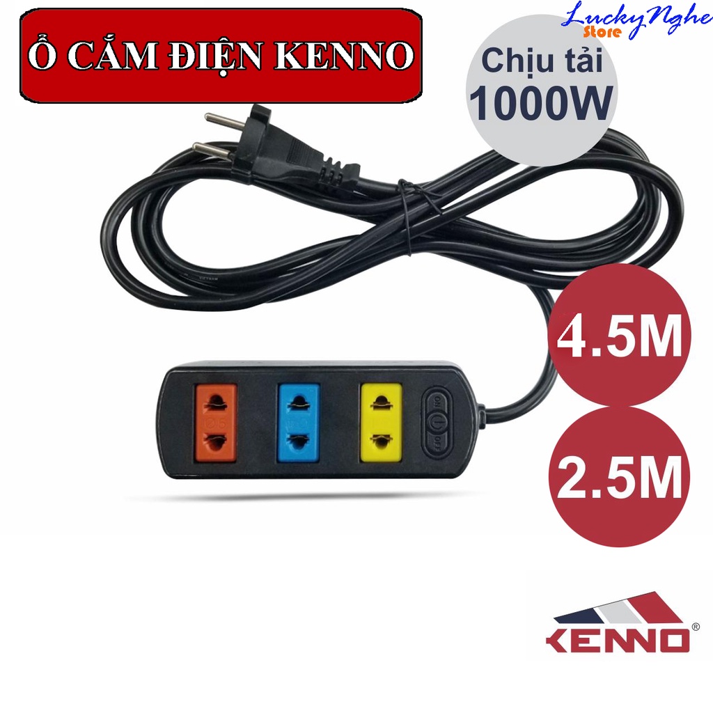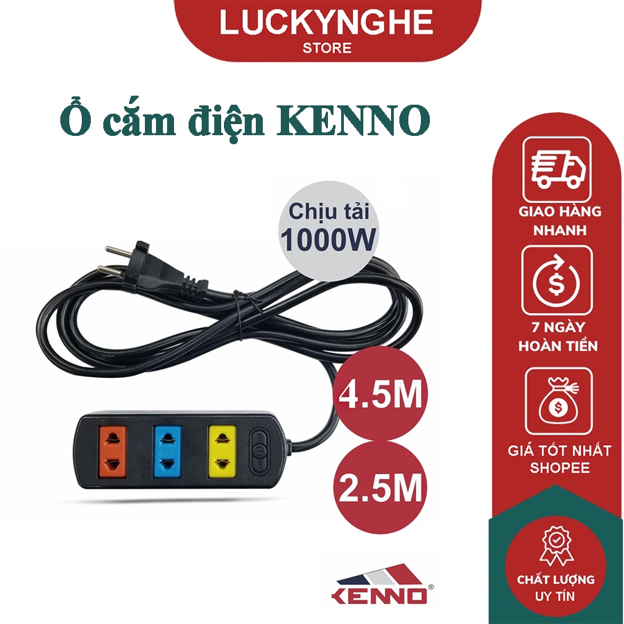Ổ cắm điện KENNO 3 lỗ màu - chiều dài dây 2.5/4.5m an toàn chống quá tảiSử dụng cho các thiết bị điện công suất đến 1000W.