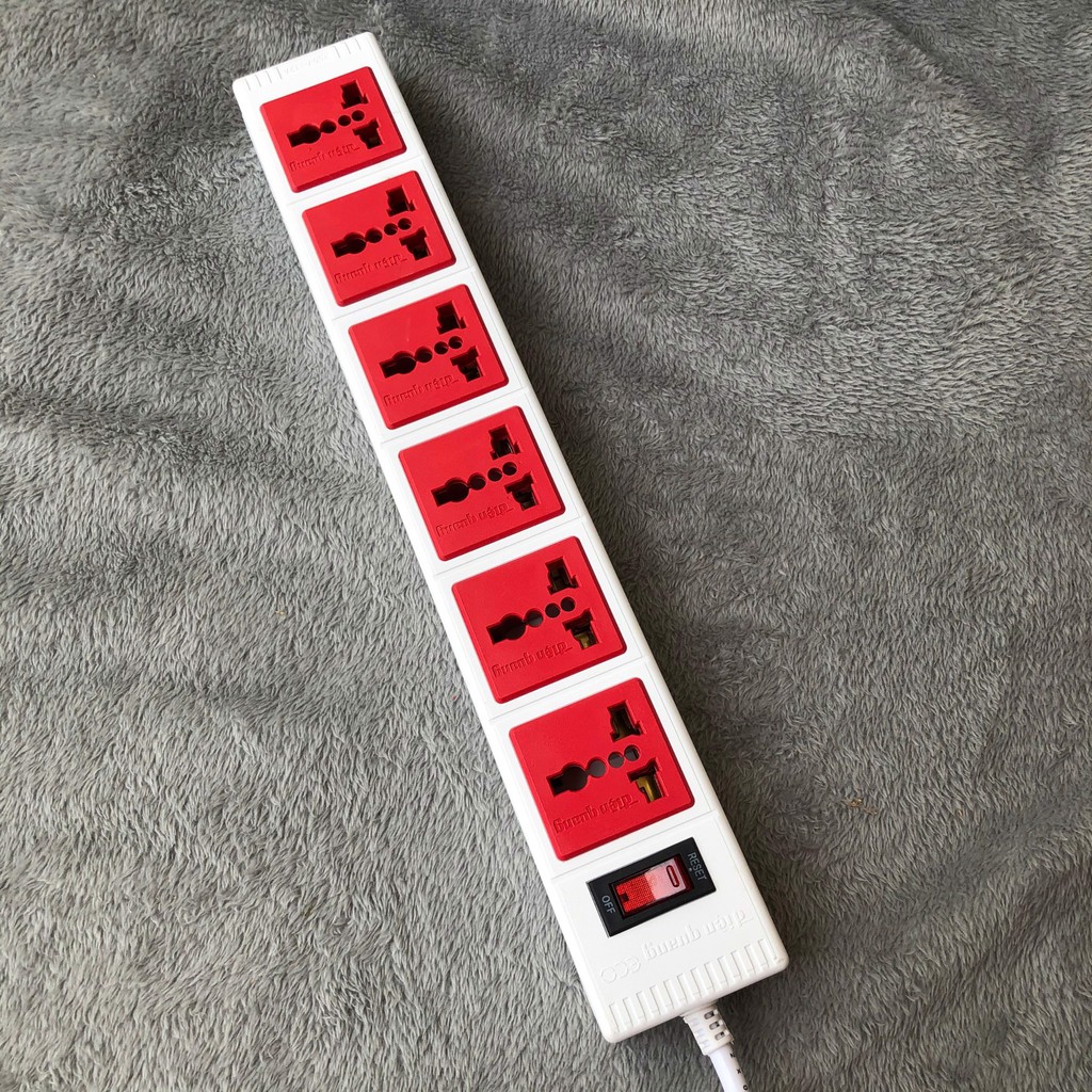 - -6 lỗ cắm đều được thiết kế theo Công nghệ Extra Power, tăng khả năng đàn hồi cho lỗ cắm, tương thích với mọi tiêu chuẩn phích cắm ( dễ dàng cắm vừa các loại phích 3 chân , 3 chân chéo, chân dẹt, chân tròn....)