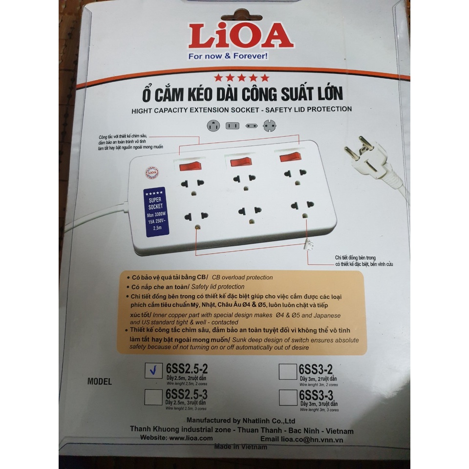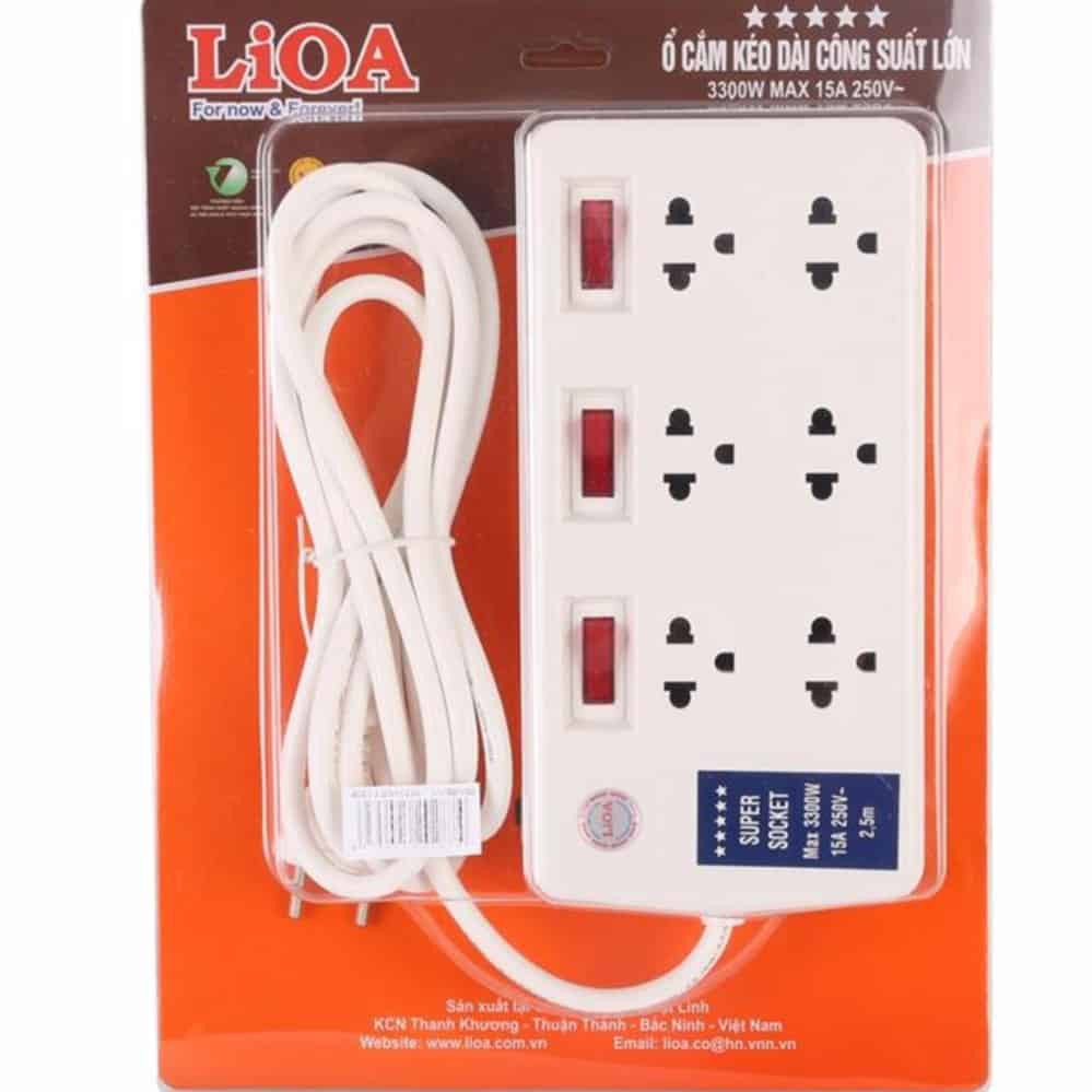 Thiết Bị Điện Gia Dụng > Mạch điện & Phụ tùng > Ổ cắm điện & Dây nối || Ổ Cắm Điện Kéo Dài Công Suất Lớn LiOA 3300W (gồm 6 ổ cắm, 3 công tắc) Ổ Cắm Lioa Siêu Bền, Siêu Chịu TảiCòn hàng