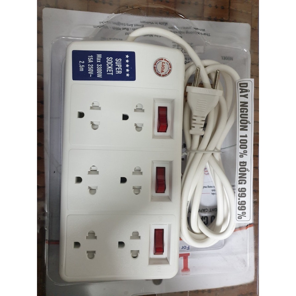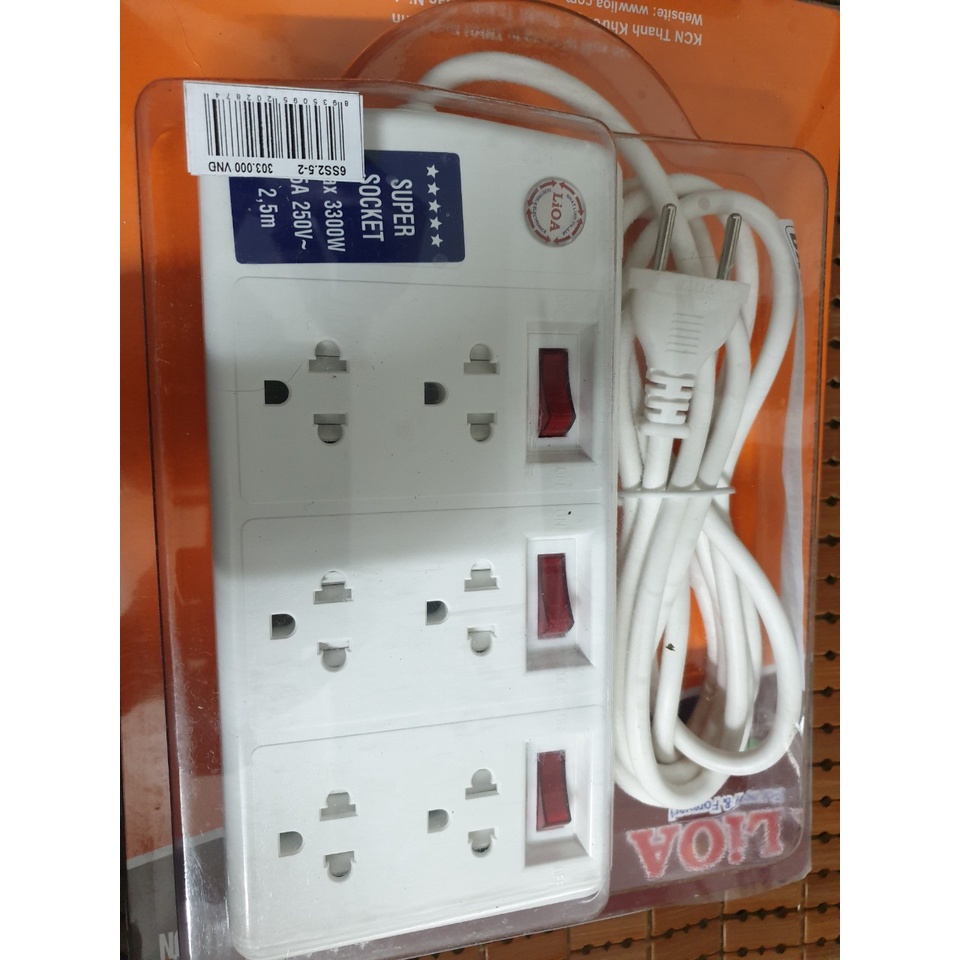 Ổ Cắm Điện Kéo Dài Công Suất Lớn LiOA 3300W (gồm 6 ổ cắm, 3 công tắc) Ổ Cắm Lioa Siêu Bền, Siêu Chịu Tải