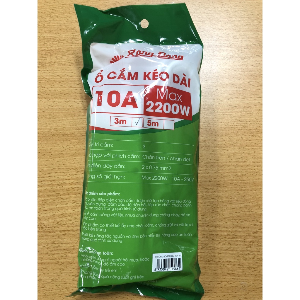 Ổ cắm điện kéo dài Rạng Đông 3m/5m Model 10A-3M, 10A-5M