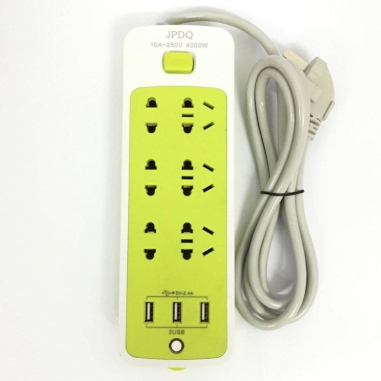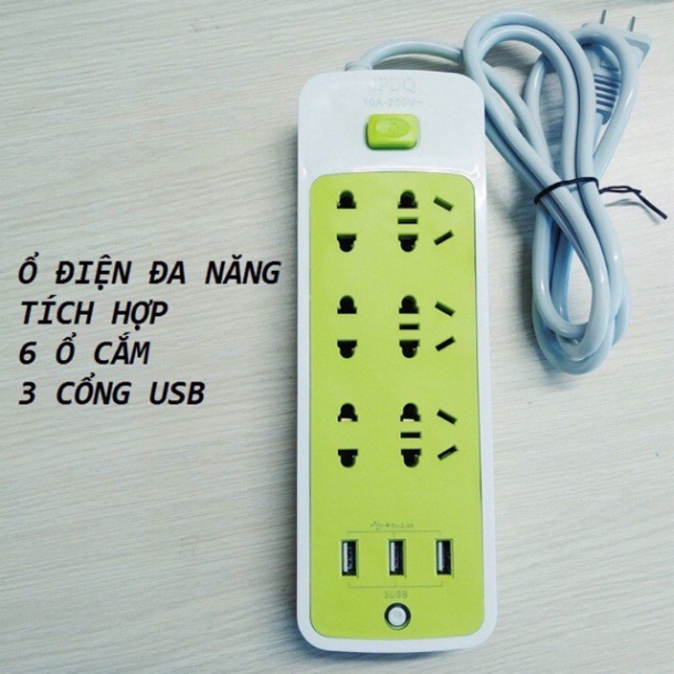 Thiết Bị Điện Gia Dụng > Mạch điện & Phụ tùng > Ổ cắm điện & Dây nối || Ổ cắm điện kiêm cổng USB đa năng màu xanh cho gia đình Ổ cắm điện 6 cổng cắm 3 cổng USBCòn hàng