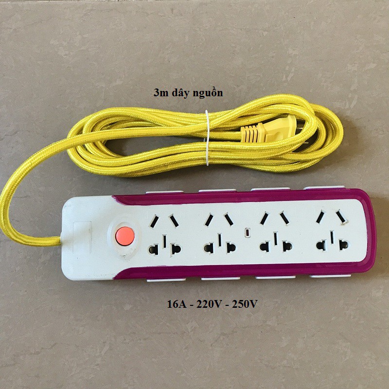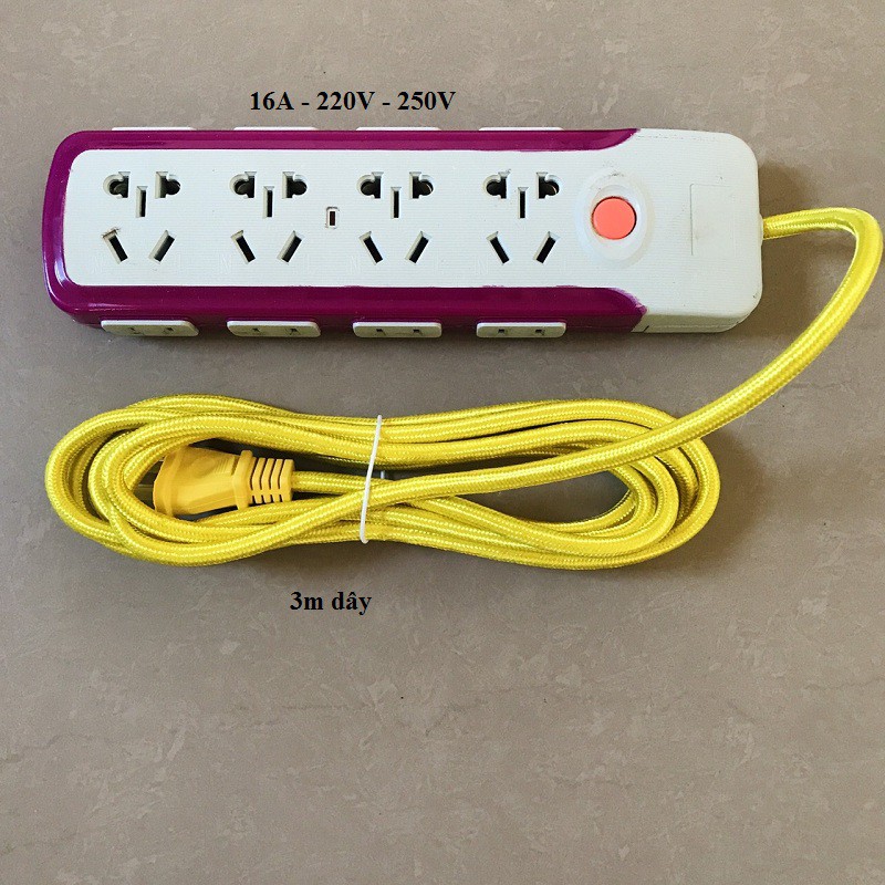 Thông số kỷ thuật:- Dây điện 3m + ổ cắm đúc + phích cắm, không vở - siêu chặt - siêu bền