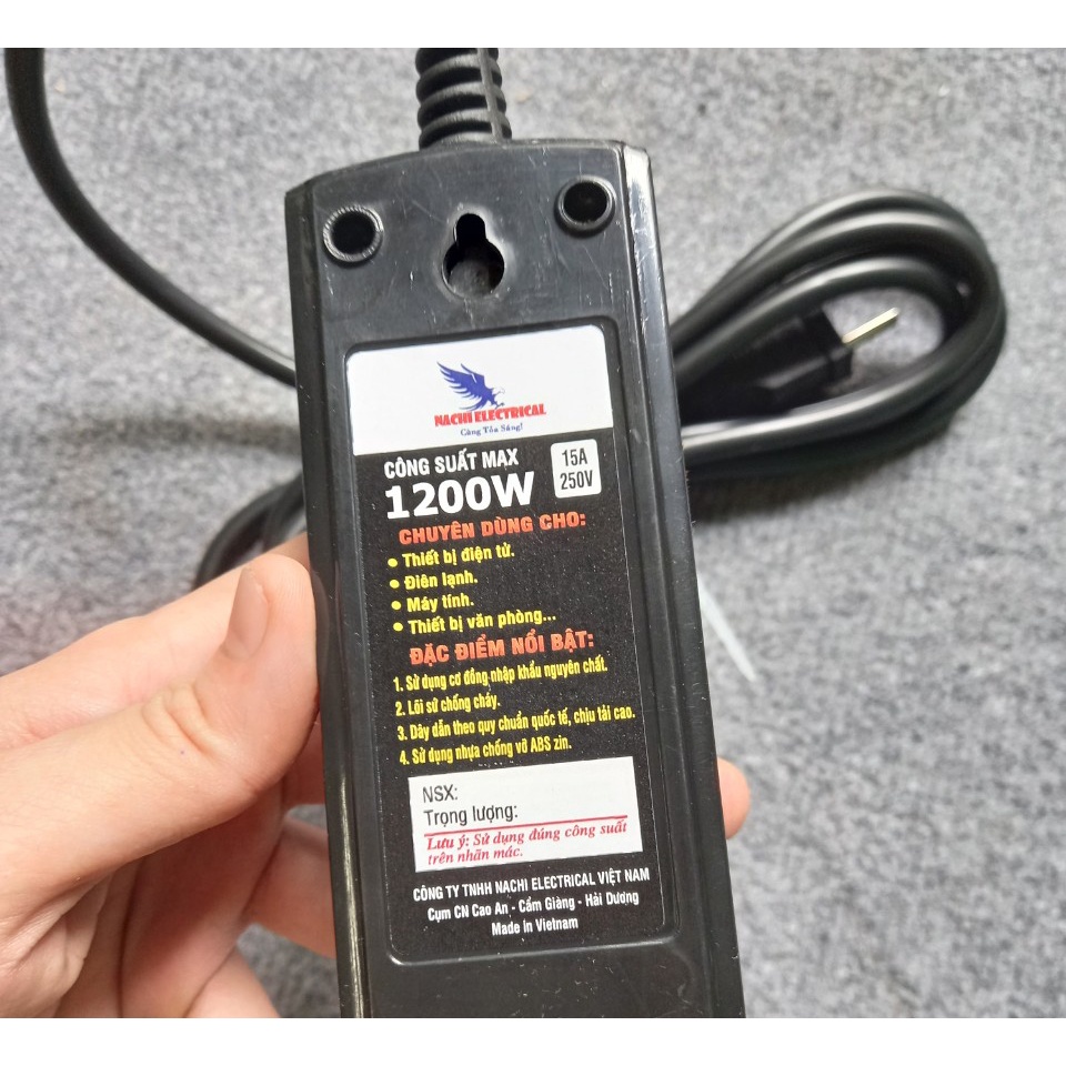 Giới thiệu Ổ cắm điện liền dây nối dài 2.5m chịu tải cao 1200W Nachi 3A3 3 lỗ