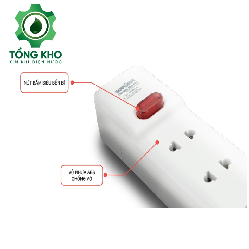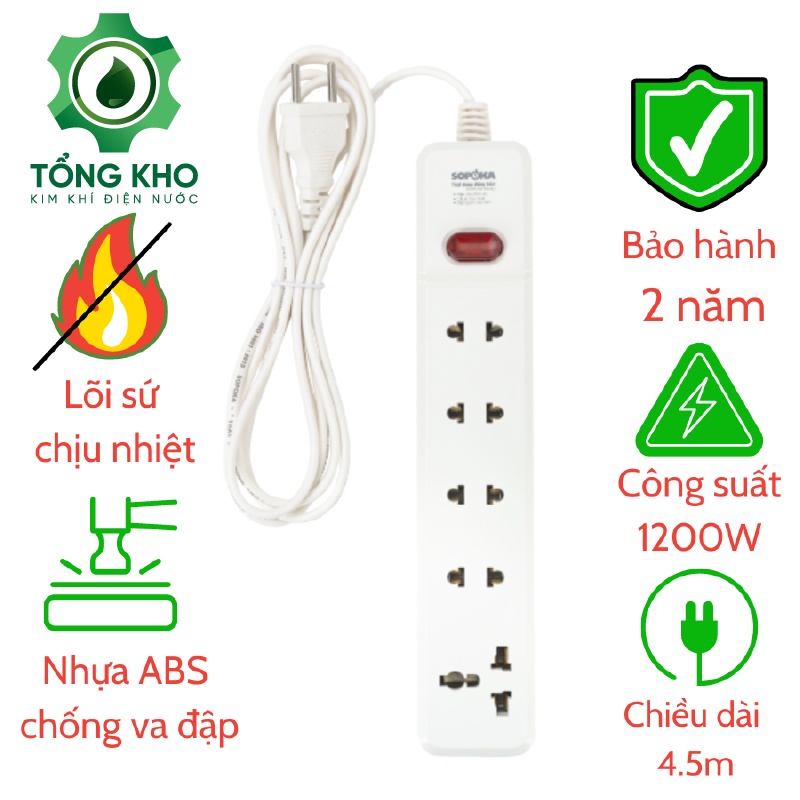 Ổ cắm điện liền dây Sopoka có công tắc chịu tải 1200W dây dài 2.5m, 4.5m – Tổng kho kim khí