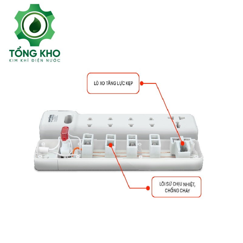 - Lõi sứ chịu nhiệt, chống cháy: tất cả các sản phẩm đều sử dụng lõi sứ cách điện chất lượng cao, chống cháy phần vỏ nhựa, chịu nhiệt lên tới 1300 độ C