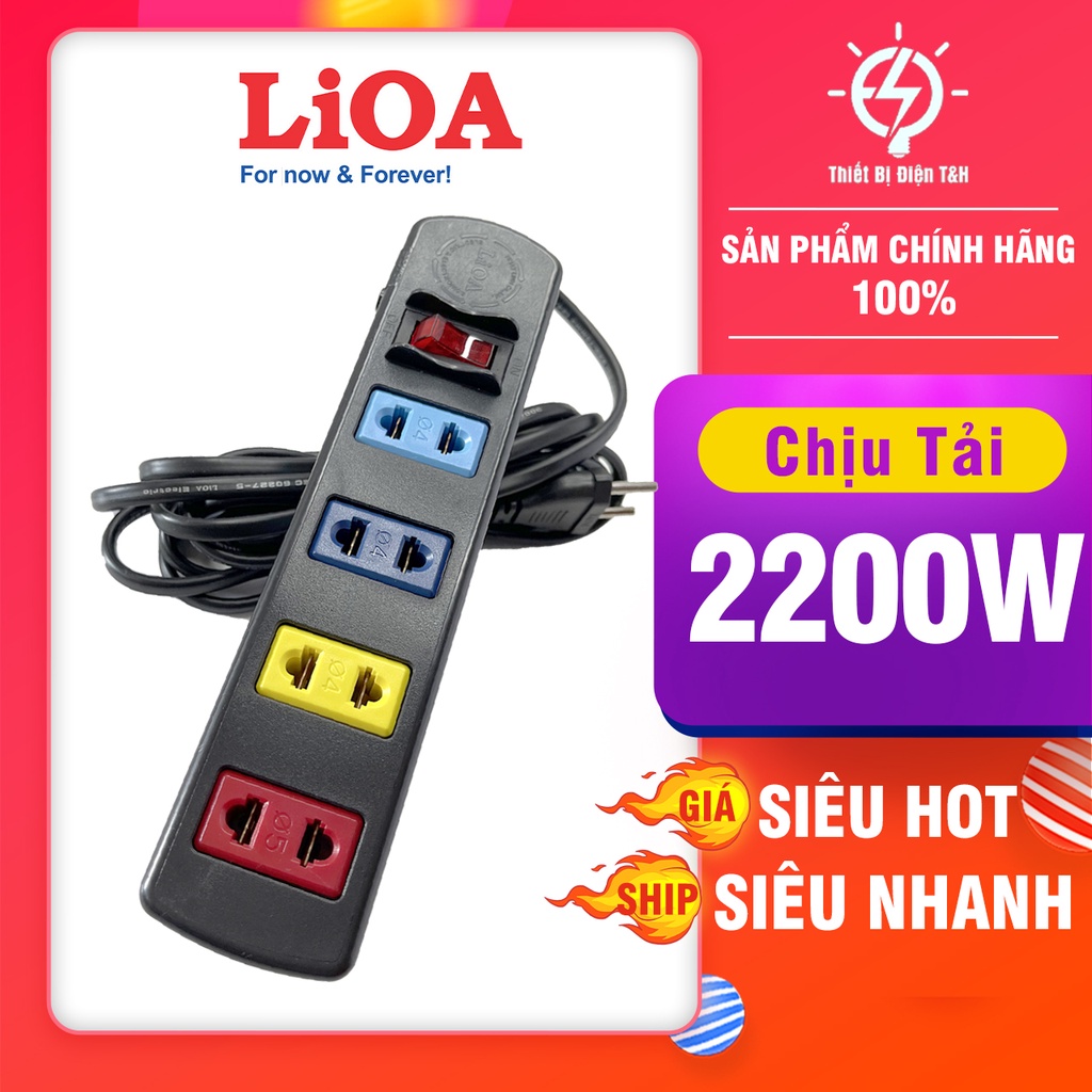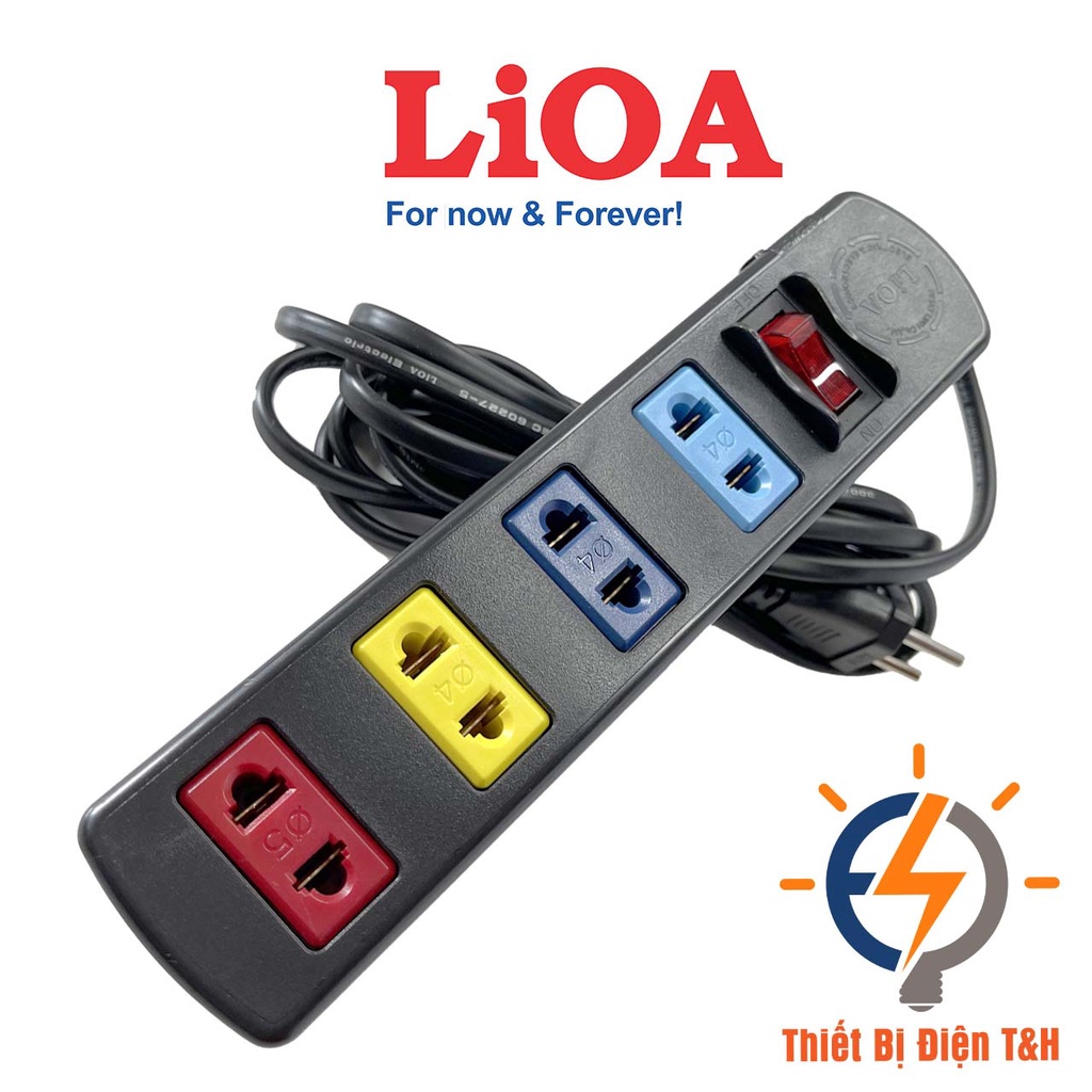 Giới thiệu Ổ cắm điện LIOA, 2200W, 4 ổ cắm, 1 công tắc, dây dài 3 mét, 5 mét, 4S3 - 4S5 - Thiết Bị Điện T&H