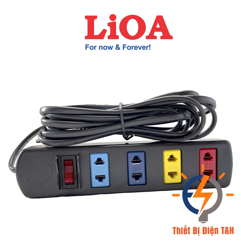 Ổ cắm điện LIOA, 2200W, 4 ổ cắm, 1 công tắc, dây dài 3 mét, 5 mét, 4S3 - 4S5 - Thiết Bị Điện T&H
