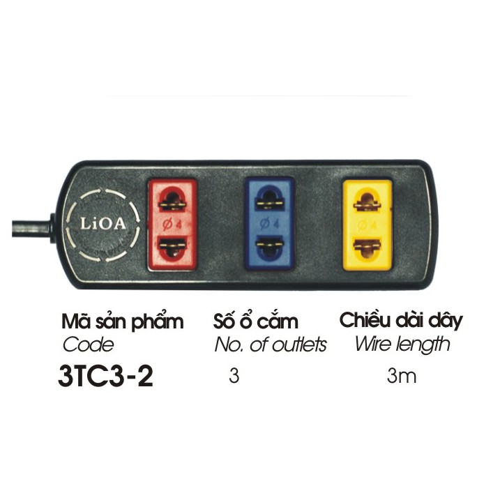 GIỚI THIỆU Ổ CẮM: Ổ cắm kéo dài phổ thông Lioa 3TC3-2Thông số kỹ thuật: