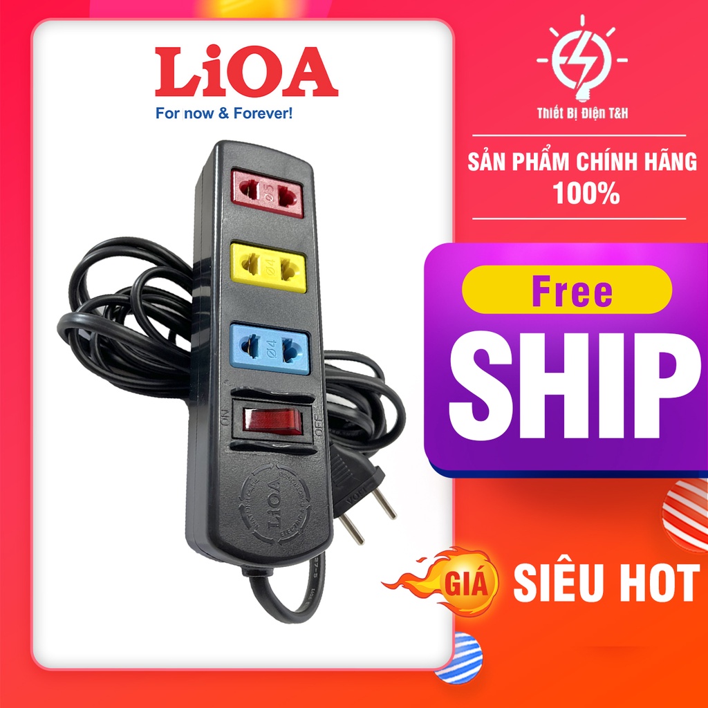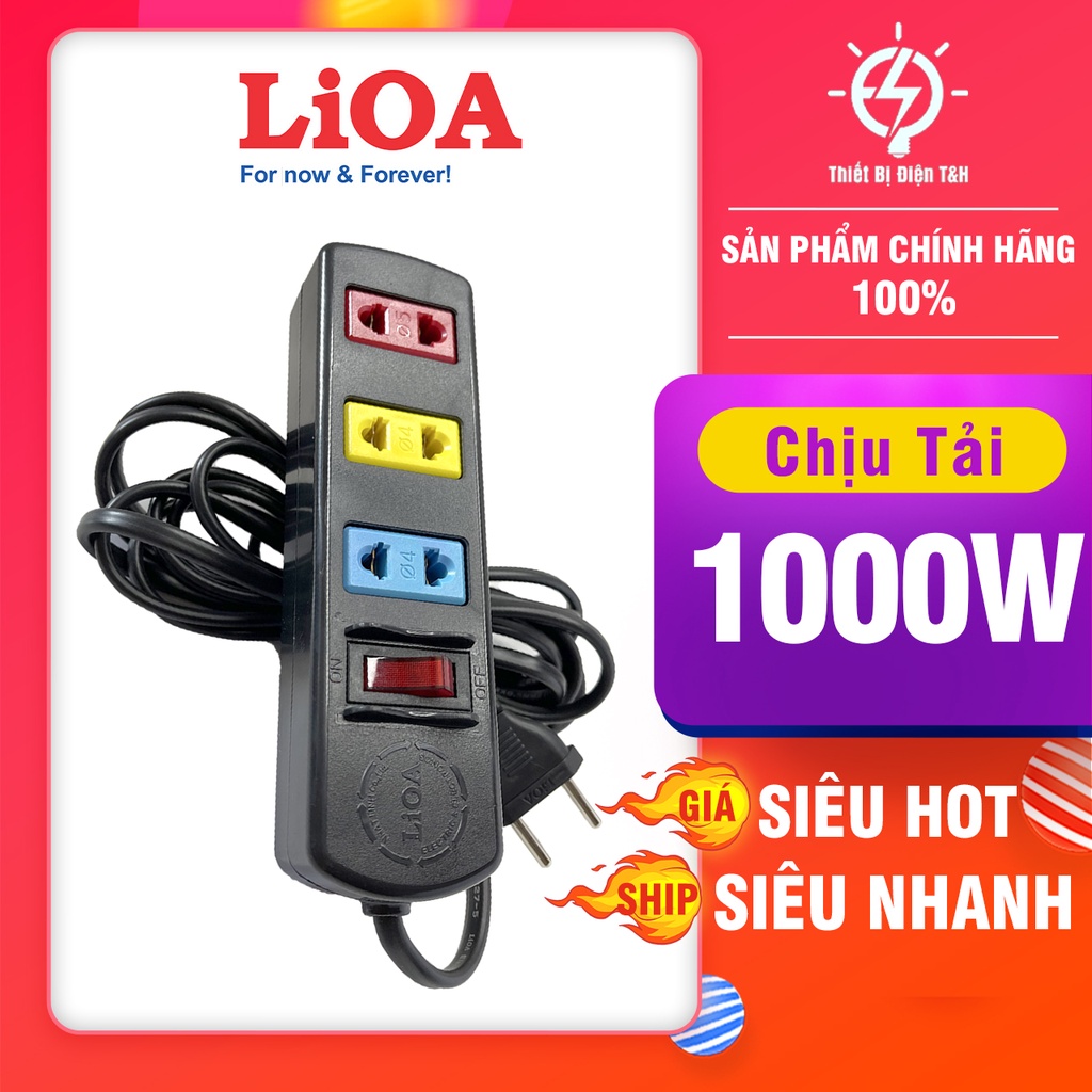 Thiết Bị Điện Gia Dụng > Mạch điện & Phụ tùng > Ổ cắm điện & Dây nối || Ổ cắm điện LIOA 3 ổ cắm, 1 công tắc, chịu tải 1000W, dây dài 3M, 5M, 3TS32 - 3TS52 - Thiết Bị Điện T&HCòn hàng