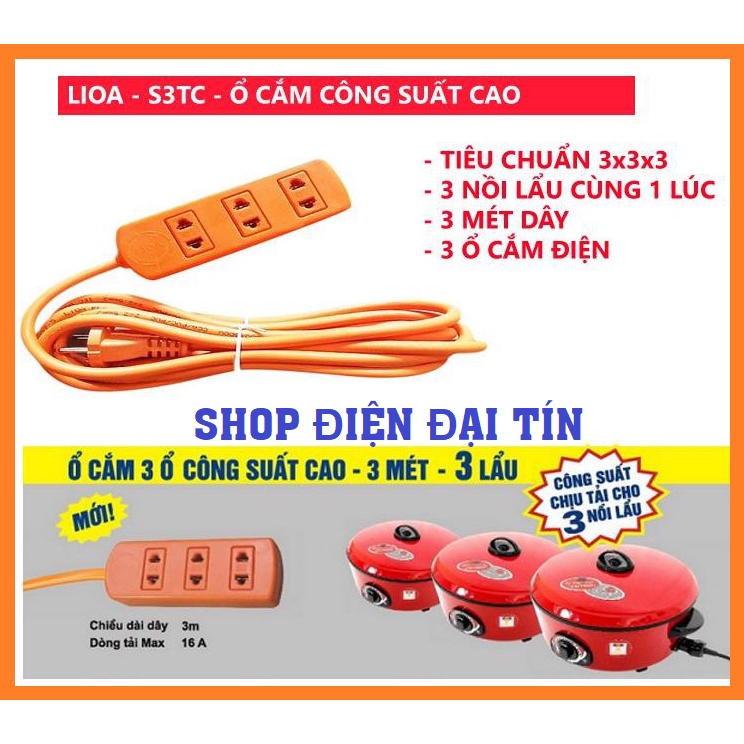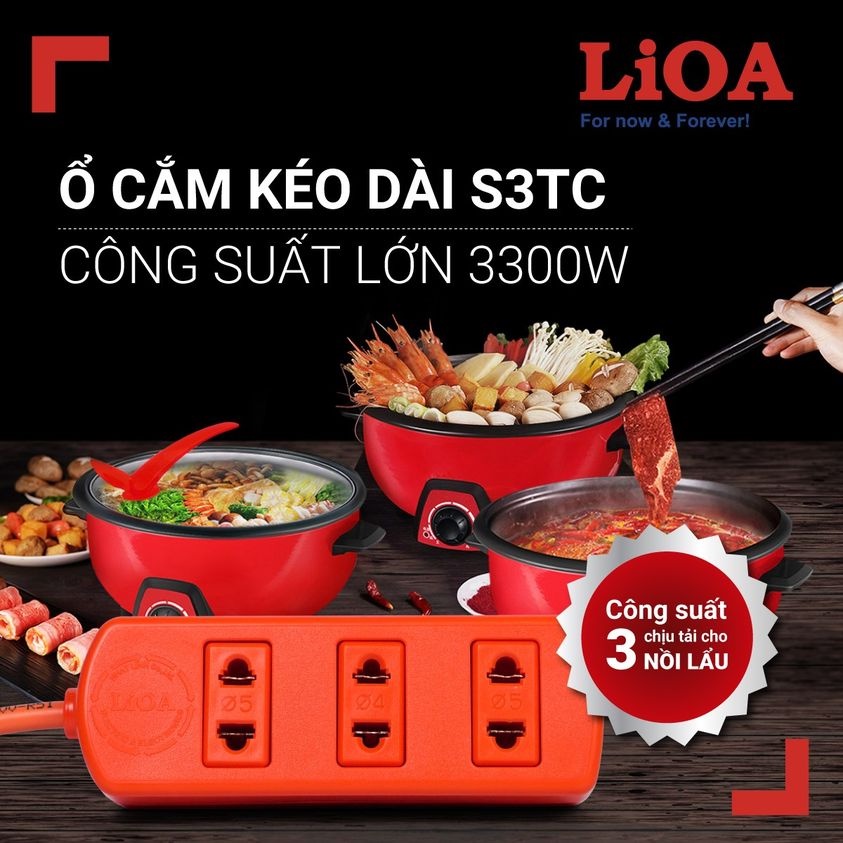 Giới thiệu Ổ cắm điện LIOA 3 ổ Công suất lớn chịu tải 3 nồi lẩu S3TC 3m