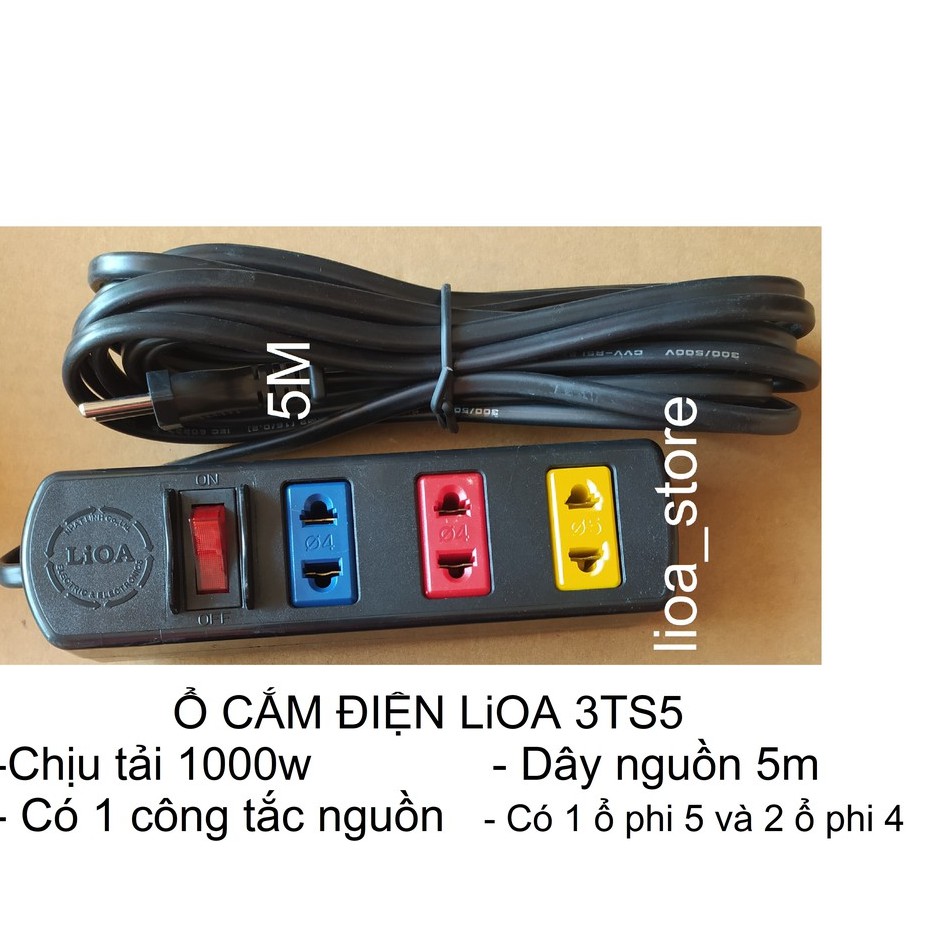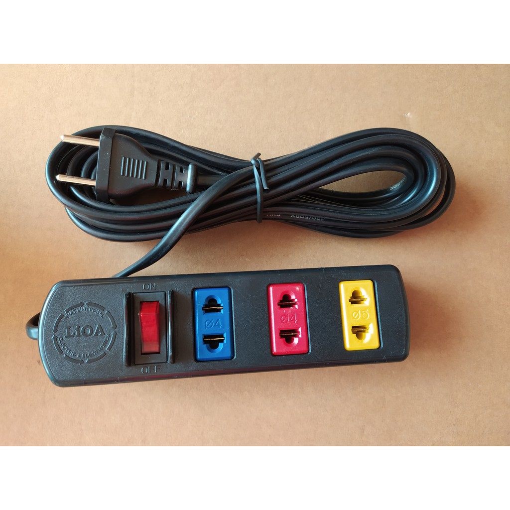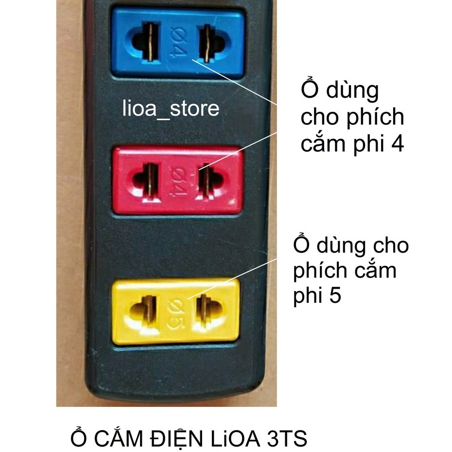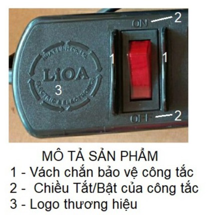 -Thân ổ cắm màu đen.có gắn logo LIOA, và ở trên mặt mỗi ô cắm có hướng dẫn rõ ràng cho người sử dụng khi dùng bằng các kí hiệu phi 4 , phi 5 .. Ổ cắm có gắn Công tắc nguôn và được bảo vệ bằng vách ngăn, đảm bảo an toàn tuyệt đối tránh vô tình bật làm tắc hoặc bật ngoài mong muốn..hoặc có ngoại lực đập vào.