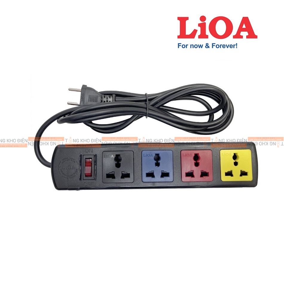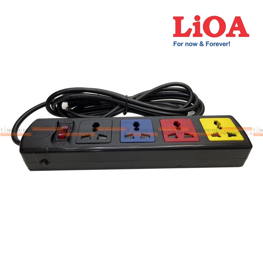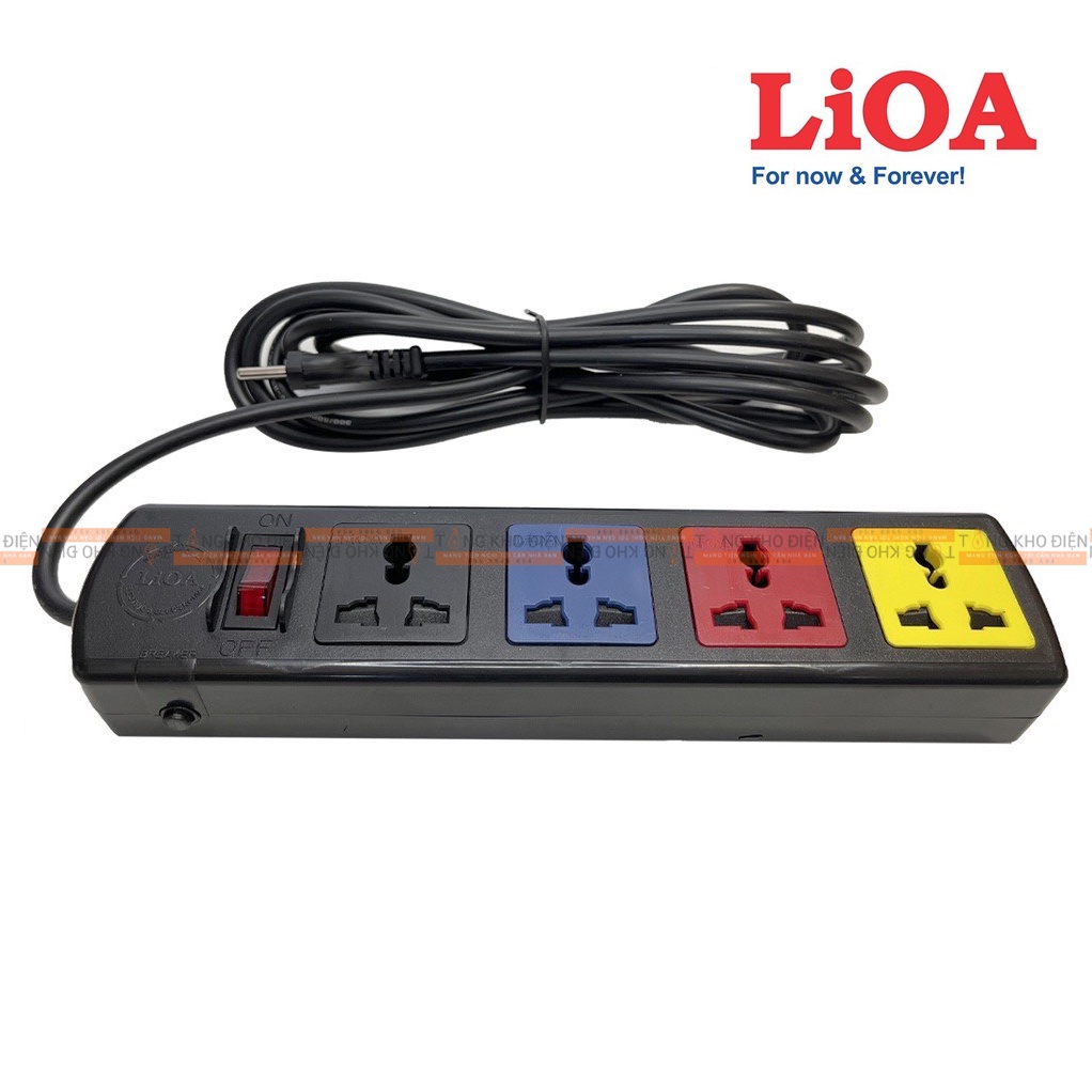 Ổ cắm điện LIOA, 4 lỗ đa năng, có công tắc, có bảo vệ quả tải, 3300W, dây dài 3m/5m, mã: 4D