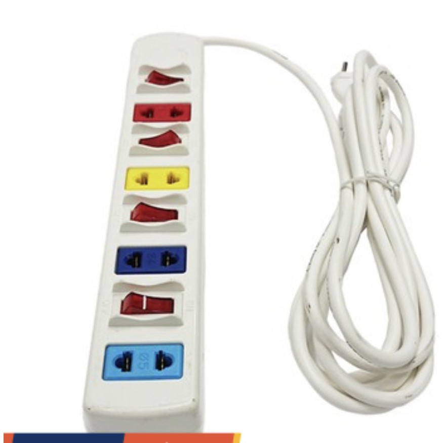 - Mỗi ổ cắm có một màu khác nhau giúp người dùng có thể phân biệt một cách dễ dàng Đồng thời thiết bị cũng tích hợp 4 công tắc tổng đóng ngắt giúp người dùng sử dụng an toàn hơn Tuy nhiên bạn cũng nên lưu ý ổ cắm có phân biệt ổ cắm Ø4 Ø5 để nâng cao tuổi thọ tránh lỏng Ngoài ra ổ cắm có thể sử dụng với công suất tối đa 2200W 10A 250V Dây điện nối dài 5 mét