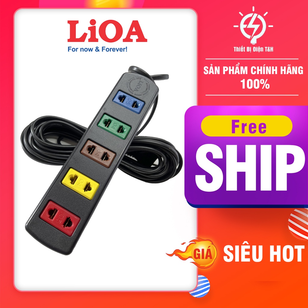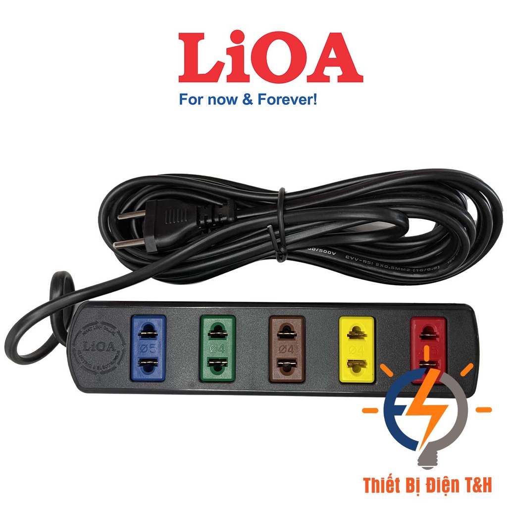 Giới thiệu Ổ cắm điện LIOA, 5 ổ cắm, chịu tải 1000W, dây dài 3 mét, 5 mét 5TC3-2 - 5TC5-2 - Thiết Bị Điện T&H